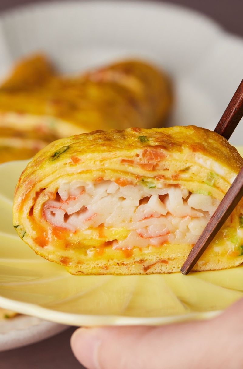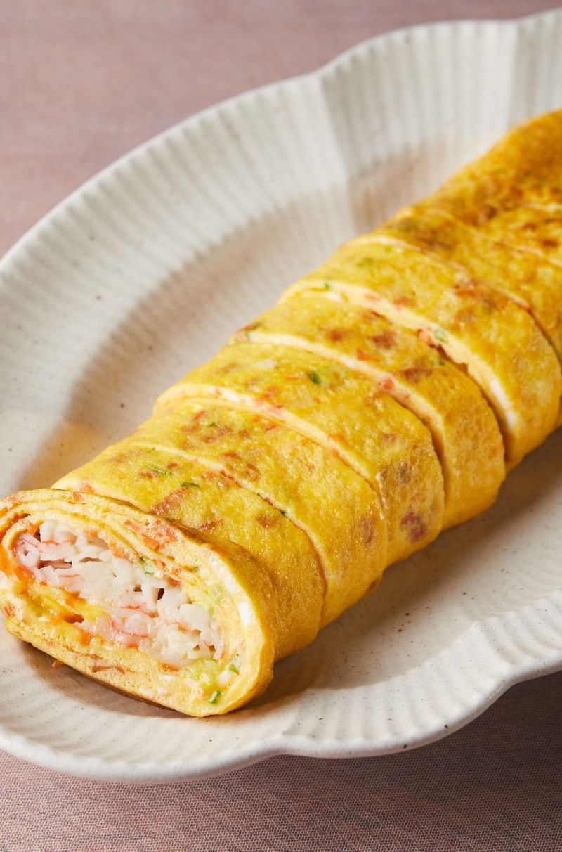 달걀과 맛의 어울림이 참 좋은 맛살과 치즈가 모여 고소한 맛을 배로 느낄 수 있는 게살 치즈 달걀말이 만들었어요! 다른 반찬 없어도 이거 하나만으로 밥 한 그릇 뚝딱 비울 수 있는 훌륭한 밥반찬이랍니다.