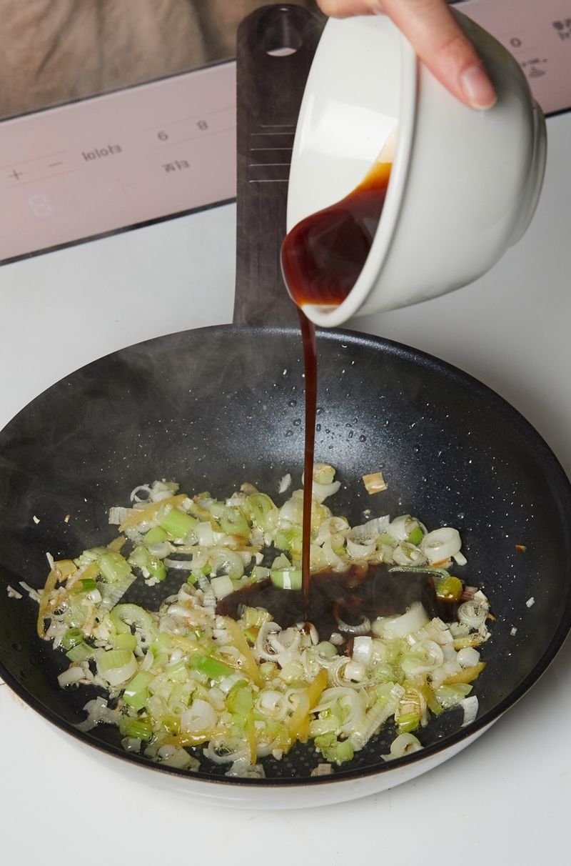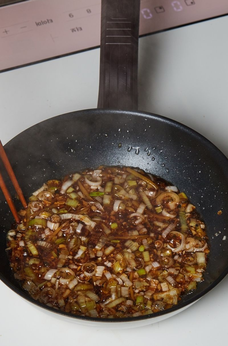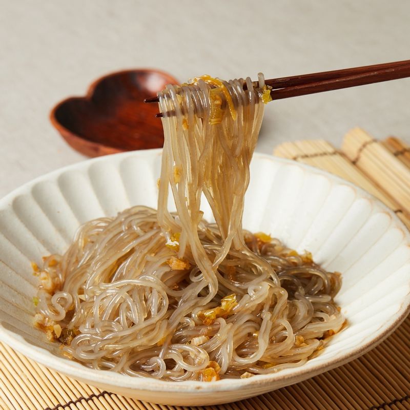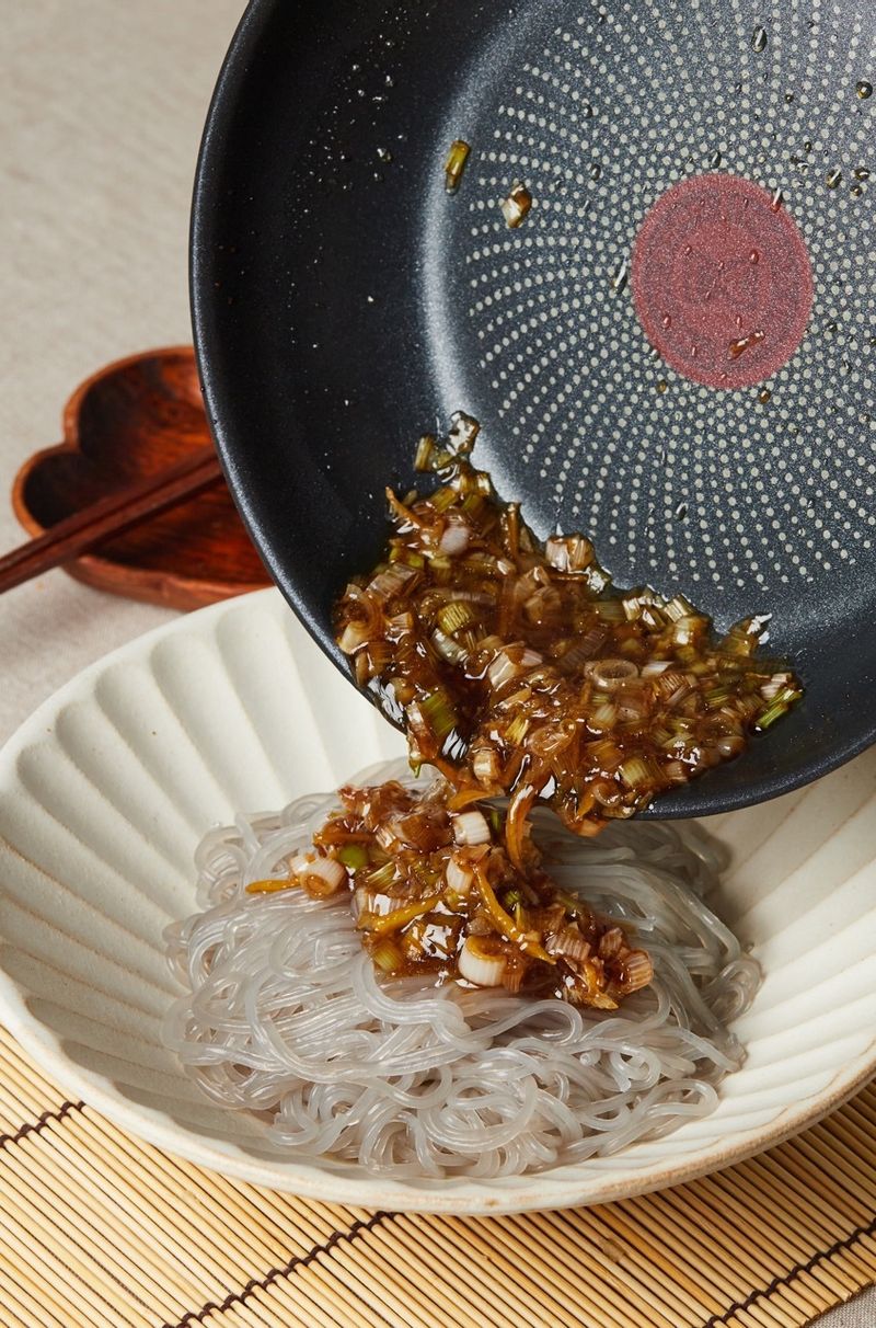 고소한 맛에 어디든 활용하기 좋은 파기름으로 깊은 풍미를 내는 비빔면을 만들었어요. 쫄깃한 당면 위에 파기름을 베이스로 만든 소스를 듬뿍 올려 간단한 한 끼로 활용하기 딱 좋아요.