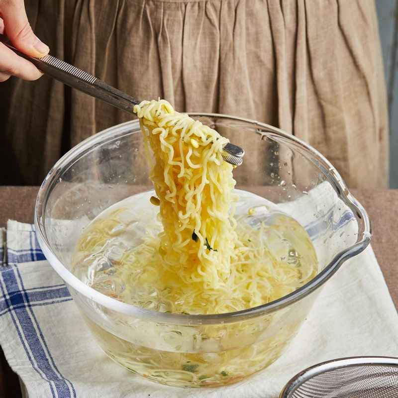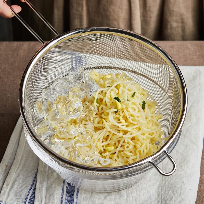 📝TIP 1. 삶은 라면은 바로 얼음 물에 담가 면발이 불지 않게 준비해 주세요. 📝TIP 2. 매콤한 맛으로 즐기고 싶다면 청양고추를 추가해도 좋아요. 📝TIP 3. 마지막 고명으로 유부를 올려줘도 정말 잘 어울려요.