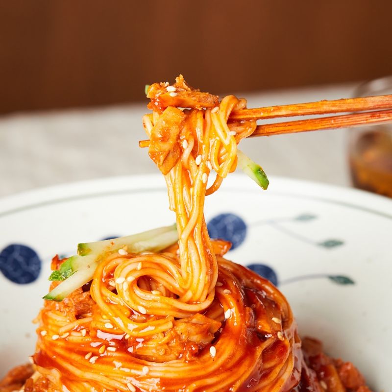 매콤한 감칠맛의 밥도둑 고추참치를 소면과 함께 쓱쓱 비벼 완성한 초간단 비빔국수! 고추장 양념까지 살짝 더해 감칠맛이 살아있어요. 입맛 없을 때에는 간단하게 고추참치 하나 꺼내서 빠르게 완성할 수 있는 메뉴랍니다.