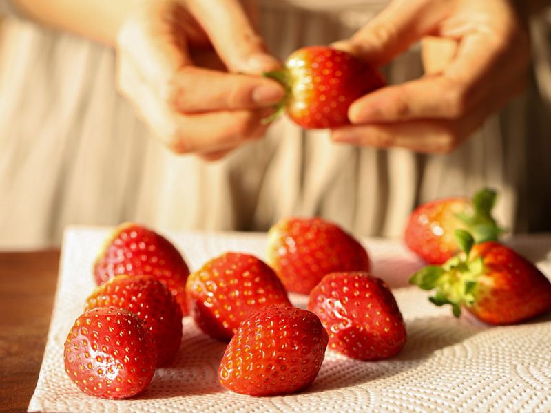 1. 생딸기 보관법 ① 밀폐 용기에 키친타월을 깔고 서로 겹치지 않게 담아 냉장 보관해 주세요. (tip. 물이 닿으면 금방 무르기 때문에 먹기 직전에 씻어 드시는 것이 좋아요) (보관 기간 : 약 1주) 2. 씻은 딸기 보관법 ① 딸기의 꼭지를 제거해 주세요. ② 물 1L에 베이킹소다 2 큰술을 녹인 후, 딸기를 1~2분간 담갔다가 흐르는 물에 가볍게 헹궈 주세요. ③ 세척한 딸기는 밀폐 용기에 담아 냉장 또는 냉동 보관해 주세요. (보관 기간 : 냉장 약 2~3일, 냉동 약 4~5개월) 👇🏻더 많은 팁은 아래 링크를 클릭해 확인해보세요!