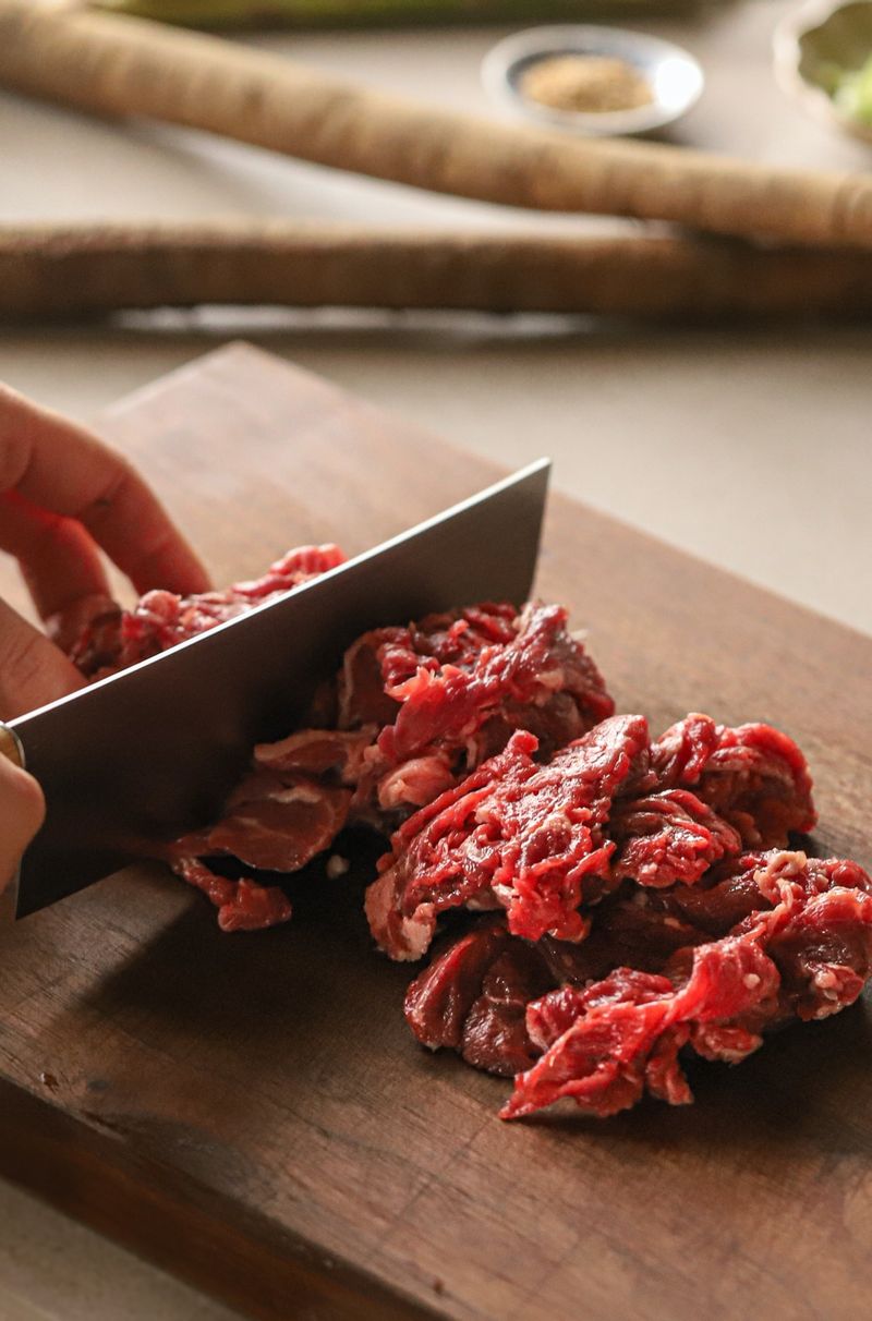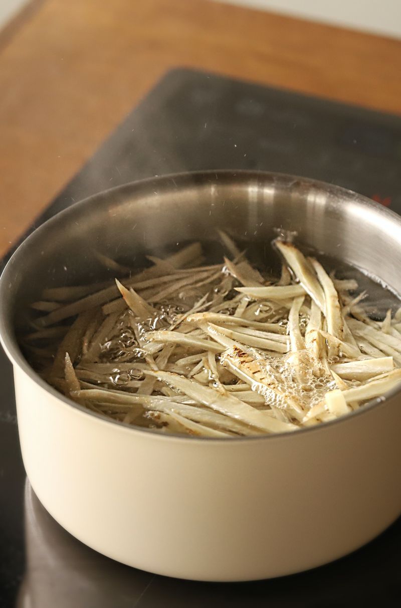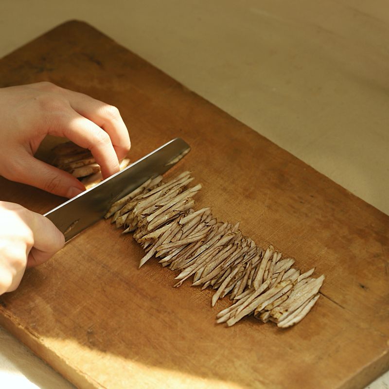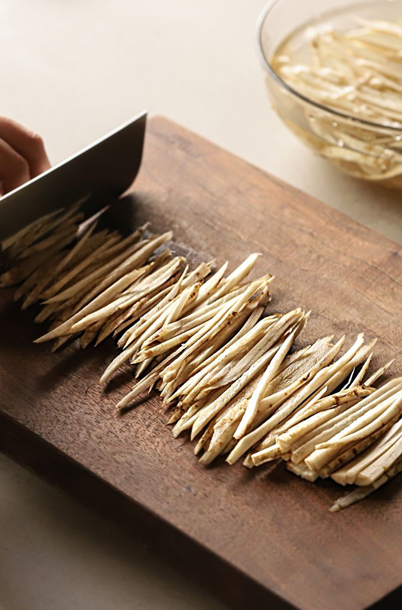 1. 채썰기 ① 흐르는 물에 흙을 씻어 주세요. ② 칼등으로 껍질을 긁어 제거해 주세요. ③ 우엉을 얇게 어슷썬 후, 가지런히 놓고 채 썰어 주세요. 2. 둥글게 썰기 ① 우엉차를 만들 때에는 얇은 두께로 둥글게 썰어 주세요. 👇🏻더 많은 팁은 아래 링크를 클릭해 확인해 보세요!