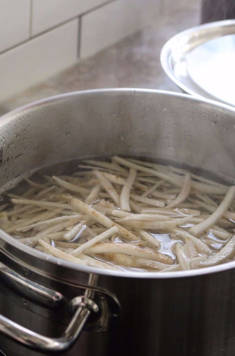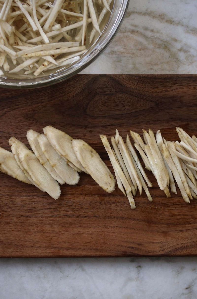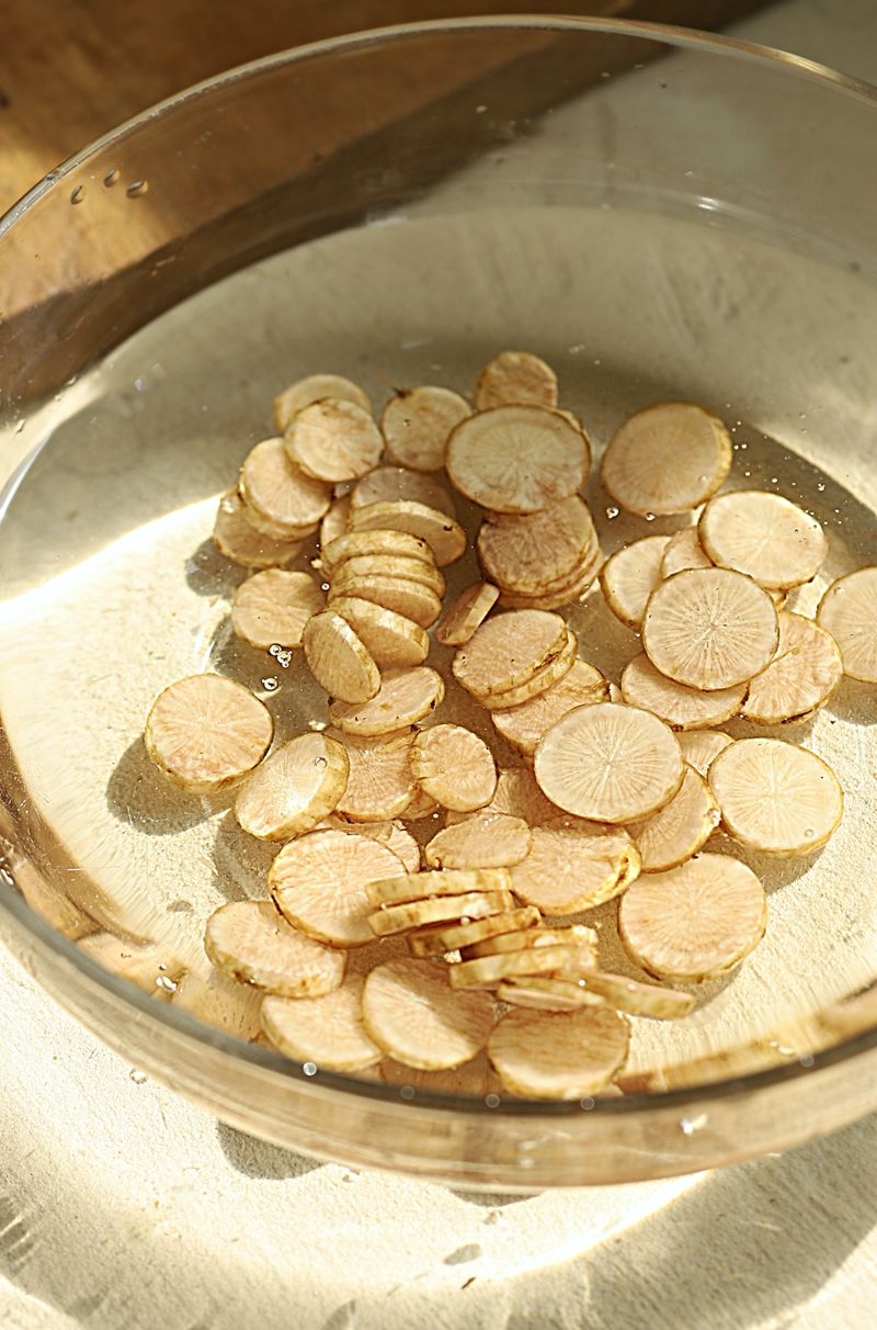 1. 채썰기 ① 흐르는 물에 흙을 씻어 주세요. ② 칼등으로 껍질을 긁어 제거해 주세요. ③ 우엉을 얇게 어슷썬 후, 가지런히 놓고 채 썰어 주세요. 2. 둥글게 썰기 ① 우엉차를 만들 때에는 얇은 두께로 둥글게 썰어 주세요. 👇🏻더 많은 팁은 아래 링크를 클릭해 확인해 보세요!