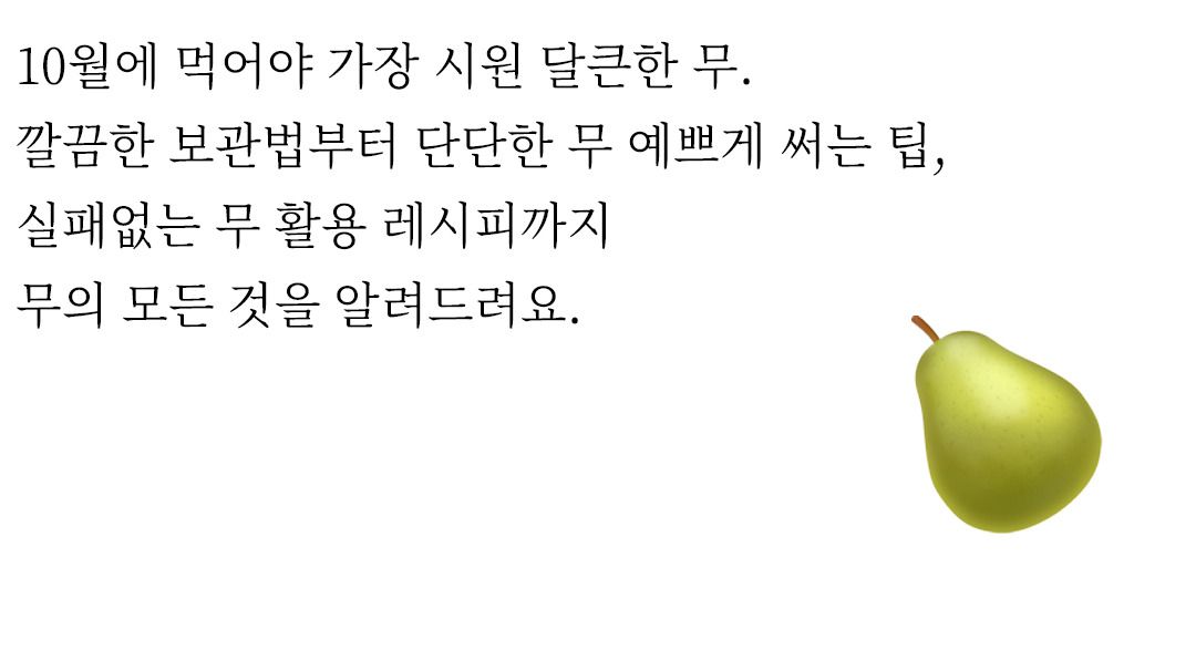 1. 실온 & 냉장 보관법 ① 씻지 않은 무는 무청을 잘라내고 신문지로 감싸 서늘한 곳에 보관해 주세요. 2. 냉동 보관법(약 2개월) ① 깨끗이 세척한 무를 용도에 맞게 잘라 밀폐 용기에 담아 냉동 보관해 주세요. ② 냉동한 무는 맛과 영양을 위해 해동 없이 바로 사용해 주세요. 👇🏻더 많은 팁은 아래 링크를 클릭해 확인해 보세요!