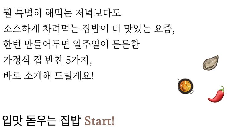 집을 가득 채우는 정겨운 냄새, 일주일 반찬 5가지