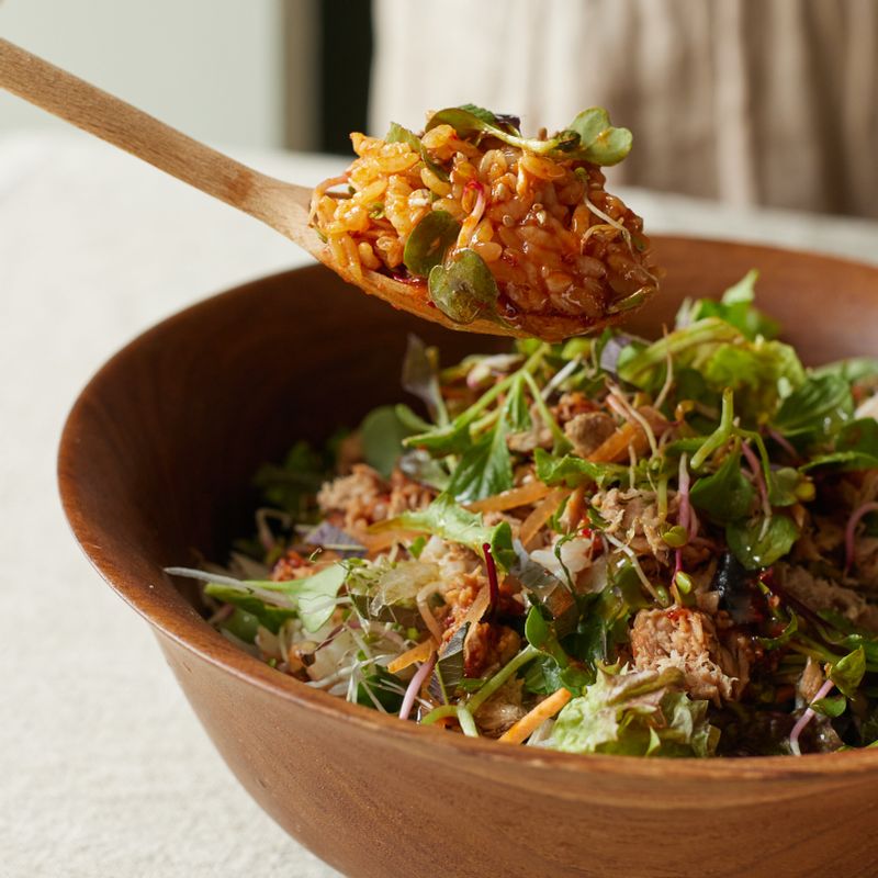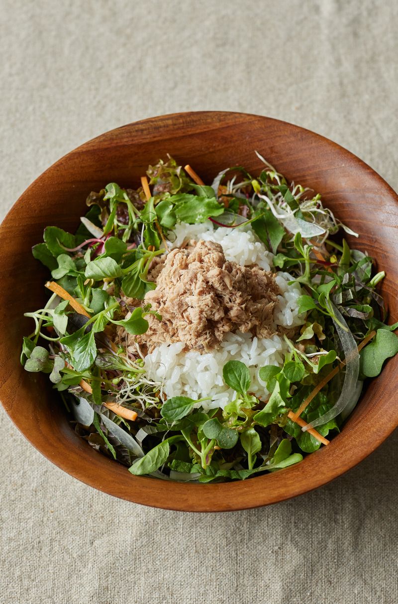 💡건강에 좋은 다양한 생채소를 꾸준히 섭취하게 될 경우, 긴장감을 해소하는 것에 도움을 줘요. 특히 쌈채소는 같이 곁들일 경우 수면개선의 효과가 더욱 좋답니다! 별다른 반찬이 없을 때 휘리릭 해먹기 좋은 생채소 참치비빔밥! 집에 늘 있는 참치에 직접 만든 초고추장 소스로 감칠맛 가득한 초간단 요리를 만들어 보세요.