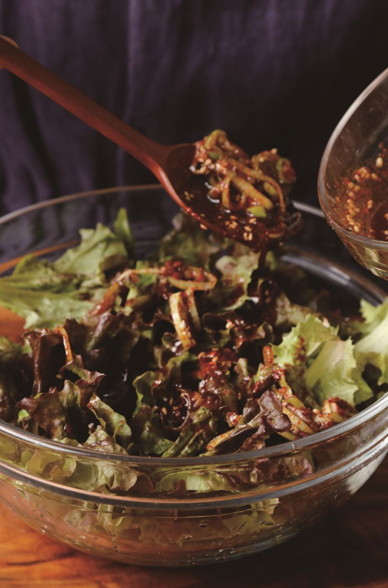 💡상추 속 풍부한 락토칼리움 성분은 스트레스 해소를 도와 불면증을 완화하는 데 도움을 준답니다. 싱싱한 상추에 입맛을 돋우는 매콤한 양념을 더해 언제 먹어도 맛있는 반찬을 만들었어요. 새콤달콤한 맛에 특히 고기요리와 궁합이 좋아 여기저기 곁들여 먹기 좋아요!