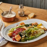 💡가벼운 칼로리는 물론, 비타민과 무기질이 풍부해 언제나 사랑받는 로메인으로 휘리릭 만들어 낸 로메인 시저 샐러드! 상큼한 로메인에 베이컨과 엔초비로 감칠맛을 더해 완성했어요. 오븐에 살짝 구워내면 향과 맛이 짙어지면서 더욱 맛있답니다.