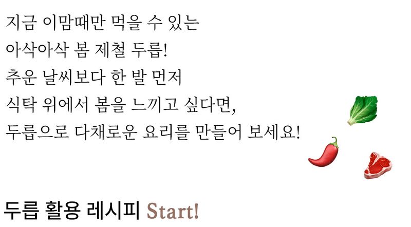 따뜻한 봄날 나른하고 입맛이 없을 때, 재료 손질만 해 빠르게 완성하기 좋답니다! 📝TIP 1. 두릅의 아린맛을 제거하기 위해 한번 데쳐 주세요. 데친 후 속까지 완전히 식혀야 색이 변하지 않아요. 📝TIP 2. 기호에 따라 청양 고추를 추가해 매콤하게 만들어도 좋아요.