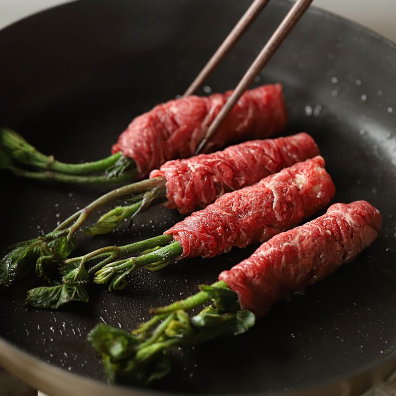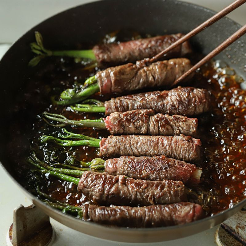 📝TIP 1. 소금을 넣고 끓인 물에 두릅을 줄기부터 넣어 30초 정도 짧게 데친 후 건져주세요. 📝TIP 2. 소고기에 전분가루를 약간 뿌려 돌돌 말아내면 소고기가 쉽게 풀리지 않아요. 📝TIP 3. 담백하게 즐기고 싶다면 양념에 졸여내지 않고 소금, 후추 간으로 양념을 끝내도 좋아요.