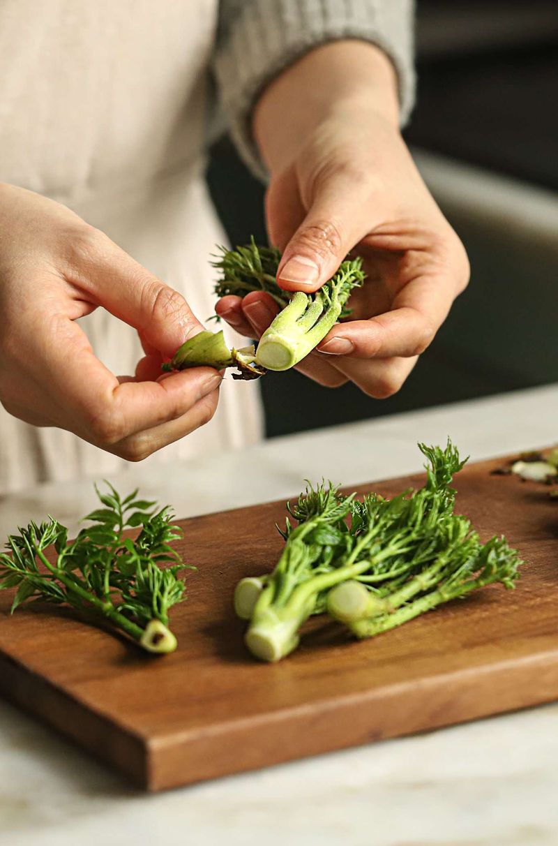 간의 독소를 풀어주고 피를 맑게 해 주는 두릅과 함께, 봄 제철 채소를 듬뿍 넣어 향기로운 술안주, 그린파스타! 초록 채소들을 살짝 쪄 준 뒤 한번에 갈아내 마치 버터를 넣은 듯 부드럽고 고소한 풍미가 가득해요.