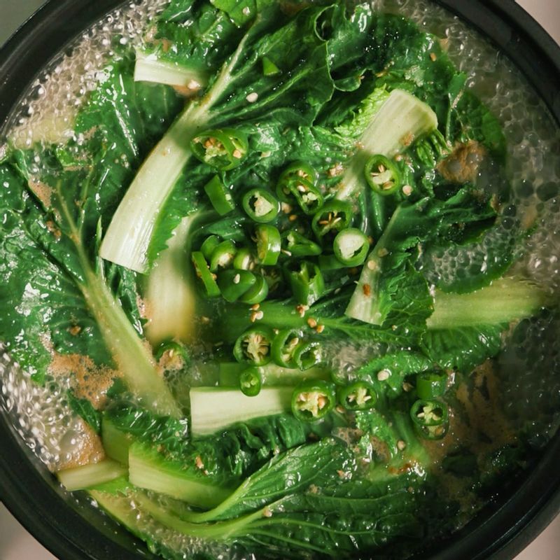 제철 봄동으로 냄비 한 가득 끓여낸 구수한 된장국! 제철 맞은 봄동 하나면 특별한 재료를 추가하지 않아도 산뜻한 맛으로 된장국을 즐길 수 있어요. 봄동 된장국으로 밥 한 그릇 든든하게 비우면 마음까지 훈훈해지는 하루가 될 거랍니다!