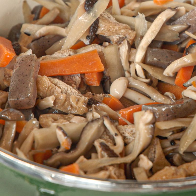 📝TIP 1. 곤약을 추가하면 쫄깃한 식감을 더할 수 있어 더욱 맛있어요. 📝TIP 2. 느타리버섯은 수분을 많이 흡수하는 편이라 만가닥버섯을 추천해요.