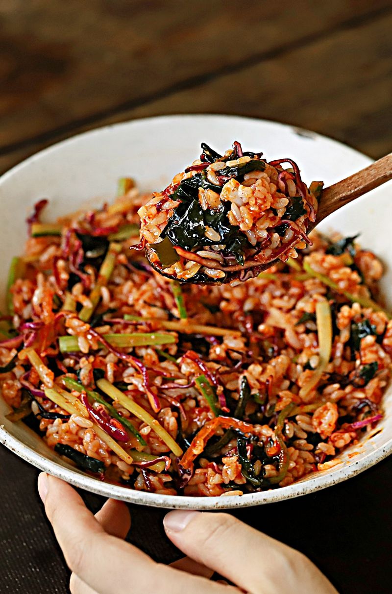 💡해초를 꾸준히 섭취하게 되면 요오드 덕분에 탈모 예방은 물론, 나쁜 활성산소 생성을 억제해 항산화 작용을 도와 건강에 도움을 준답니다. 오독오독 신선한 해초에 톡톡 터지는 날치알까지 밥 위에 둘러 담아 완성한 해초 비빔밥! 여기에 입맛을 돋우는 초고추장 소스를 부어 한 끼 뚝딱 간편한 한 끼를 즐겨보세요!