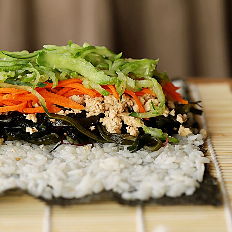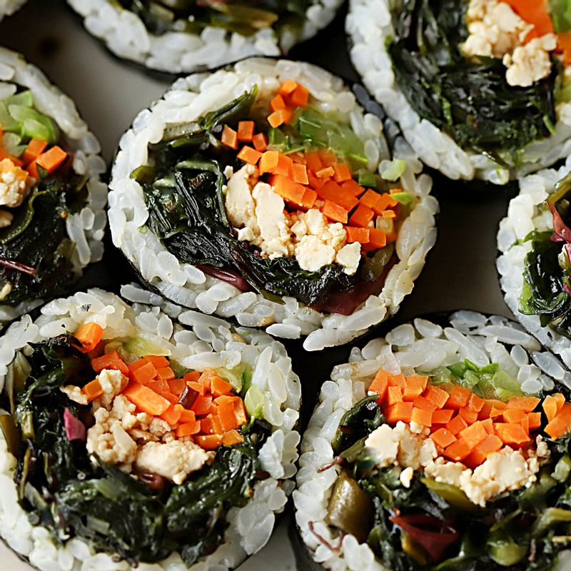 💡해초에 풍부한 칼슘은 모발의 발육을 촉진시키는 필수 영양소로 탈모가 있다면 자주 먹어주면 좋아요. 담백하게 포만감도 채워주면서 건강도 챙겨주는 해초 김밥! 해초와 두부를 듬뿍 넣어 다채로운 식감은 물론, 궁합이 신선해 계속 먹게 될거예요!