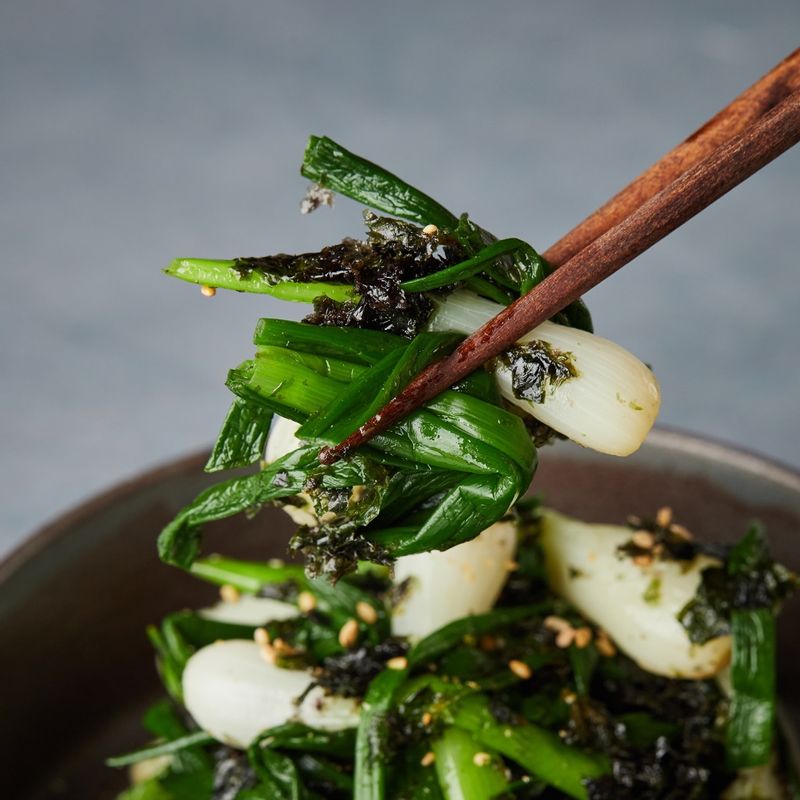 💡해조류에는 철분이 풍부해 모발 성장에 도움을 주는 것은 물론, 떨어진 면역력 회복에도 좋다는 사실! 가볍게 데친 쪽파와 김을 조물조물 무쳐내 고소함이 가득 느껴지는 별미 반찬을 완성했어요. 김의 감칠맛 덕분에 별다른 재료 없이 기본 양념만으로도 최고의 맛을 낼 수 있답니다!