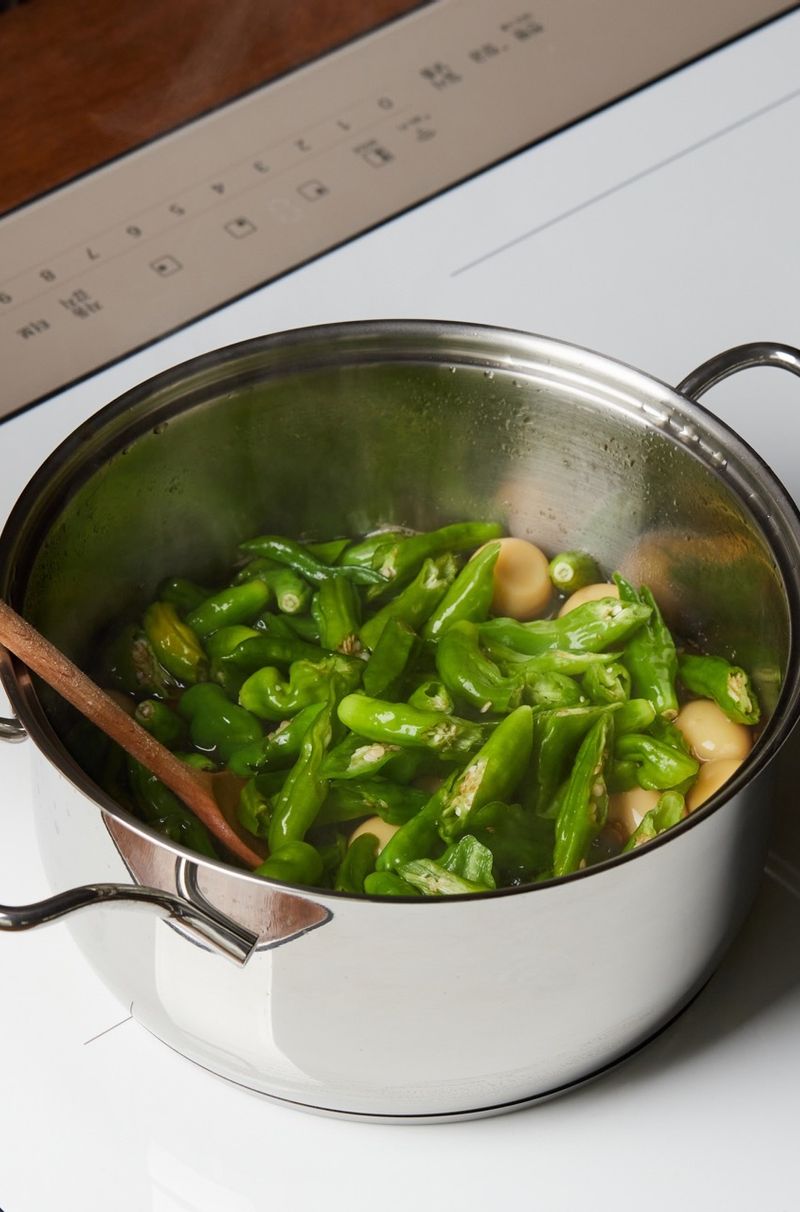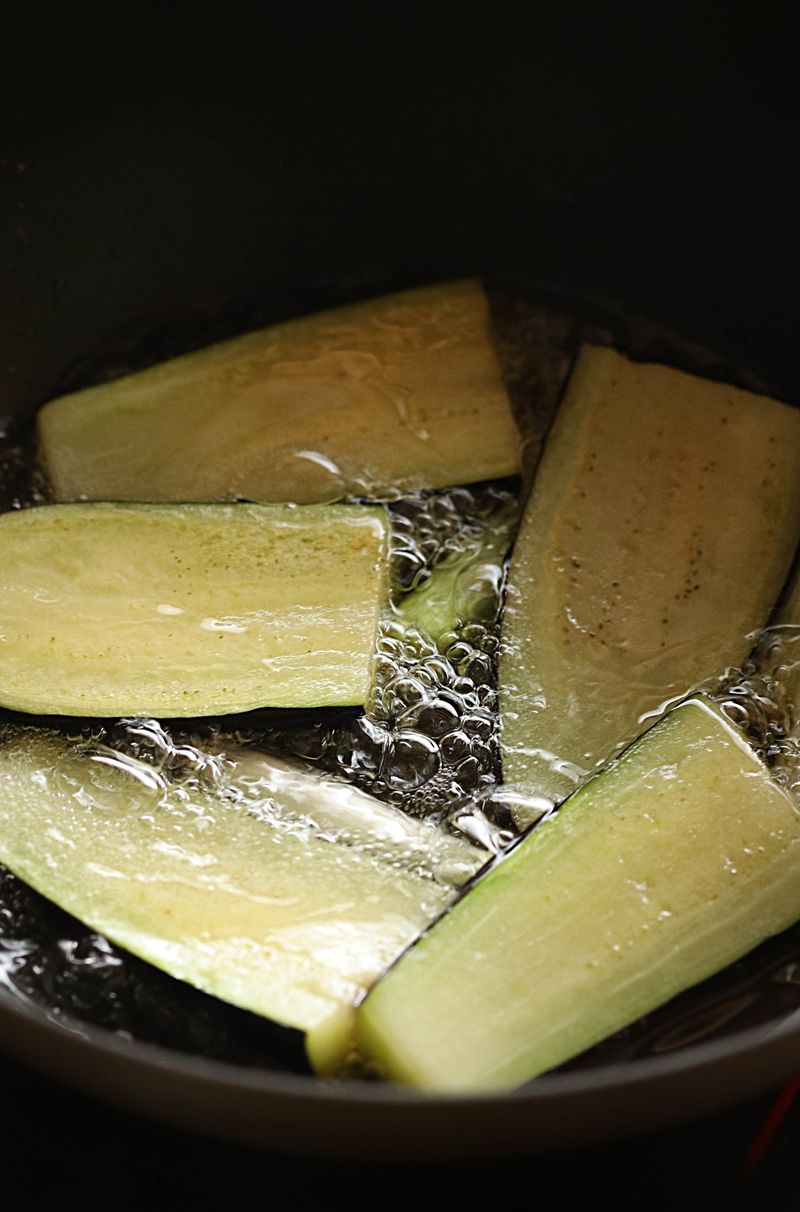 평범한 가지무침 반찬이 질린다면, 색다르게 완성하는 가지 절임! 재빨리 튀긴 가지를 간장소스에 절인 후 냉장고에서 하루, 이틀정도 숙성시키면 정말 맛있어요. 촉촉하고 부드러운 가지에 대파의 풍미가 가득 베어 밥을 훔쳐 가는 신흥 밥도둑이랍니다.
