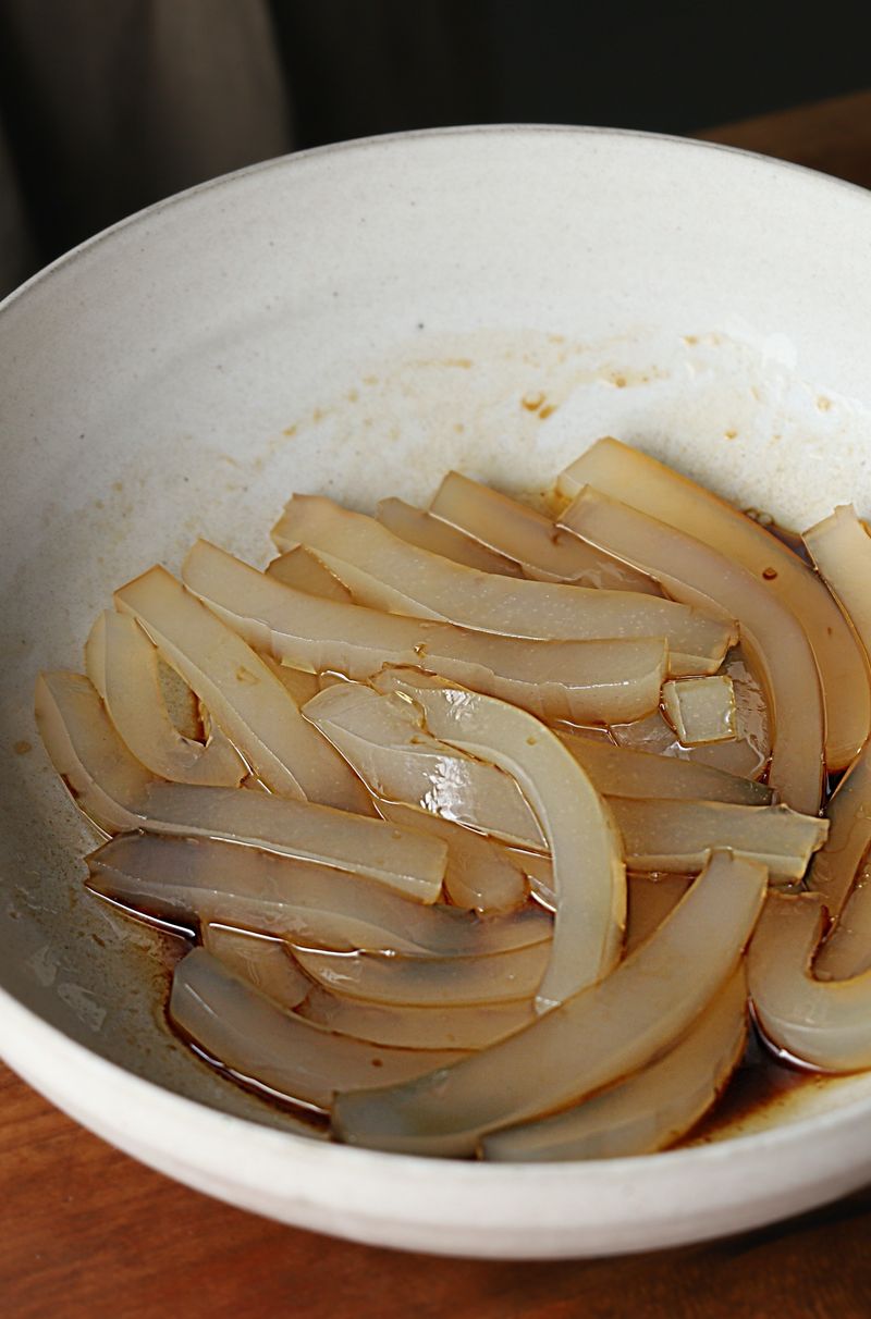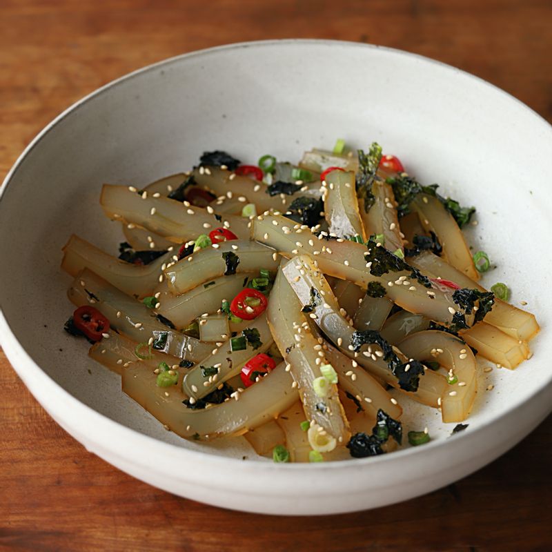 📝TIP 1. 청포묵이 완전히 투명해질 때까지 데처주세요. 📝TIP 2. 기호에 따라 통깨와 부순 조미김을 추가해 맛있게 즐겨주세요.