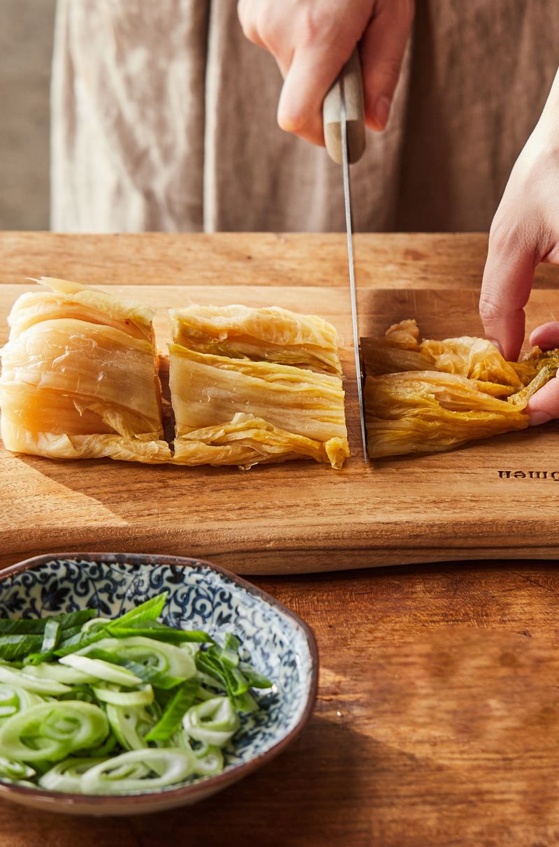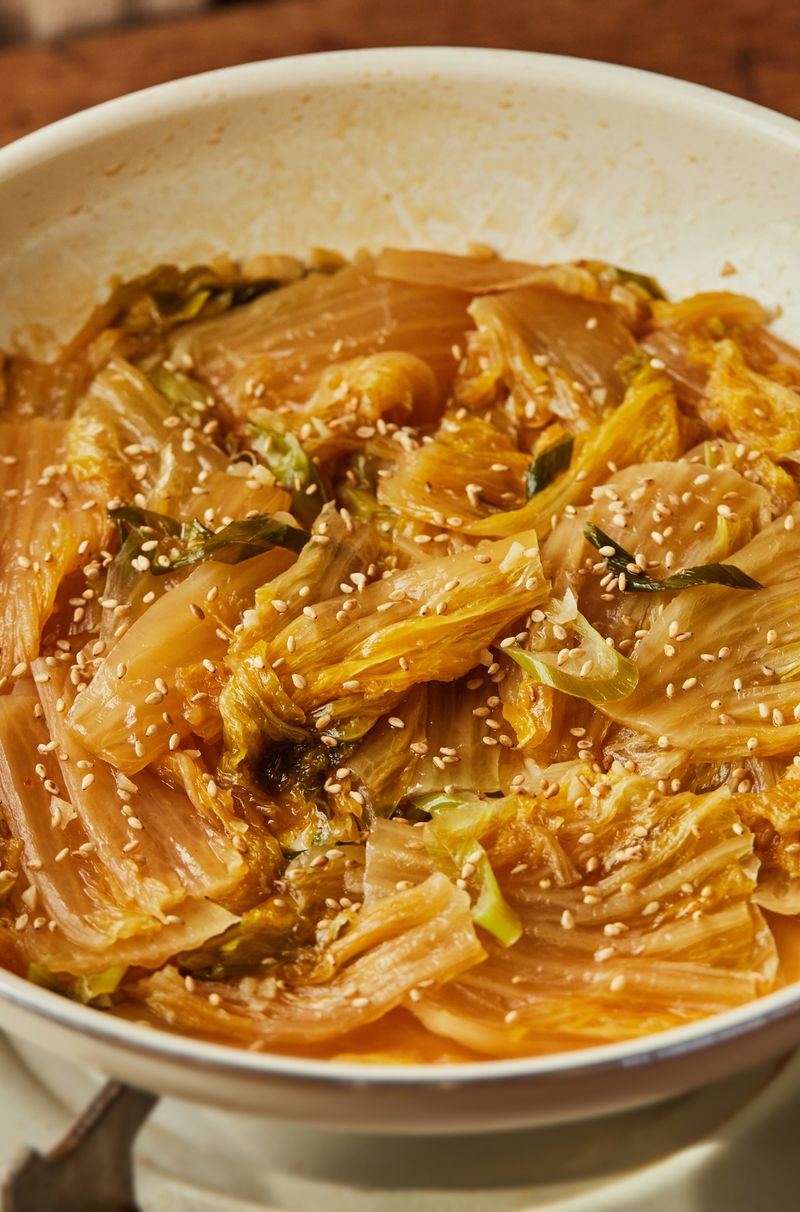 📝TIP 1. 묵은지의 염도에 따라 찬물에 20분 정도 담가 짠 기를 제거해 사용해도 좋아요. 📝TIP 2. 들기름이 없다면 참기름을 활용해도 괜찮아요.