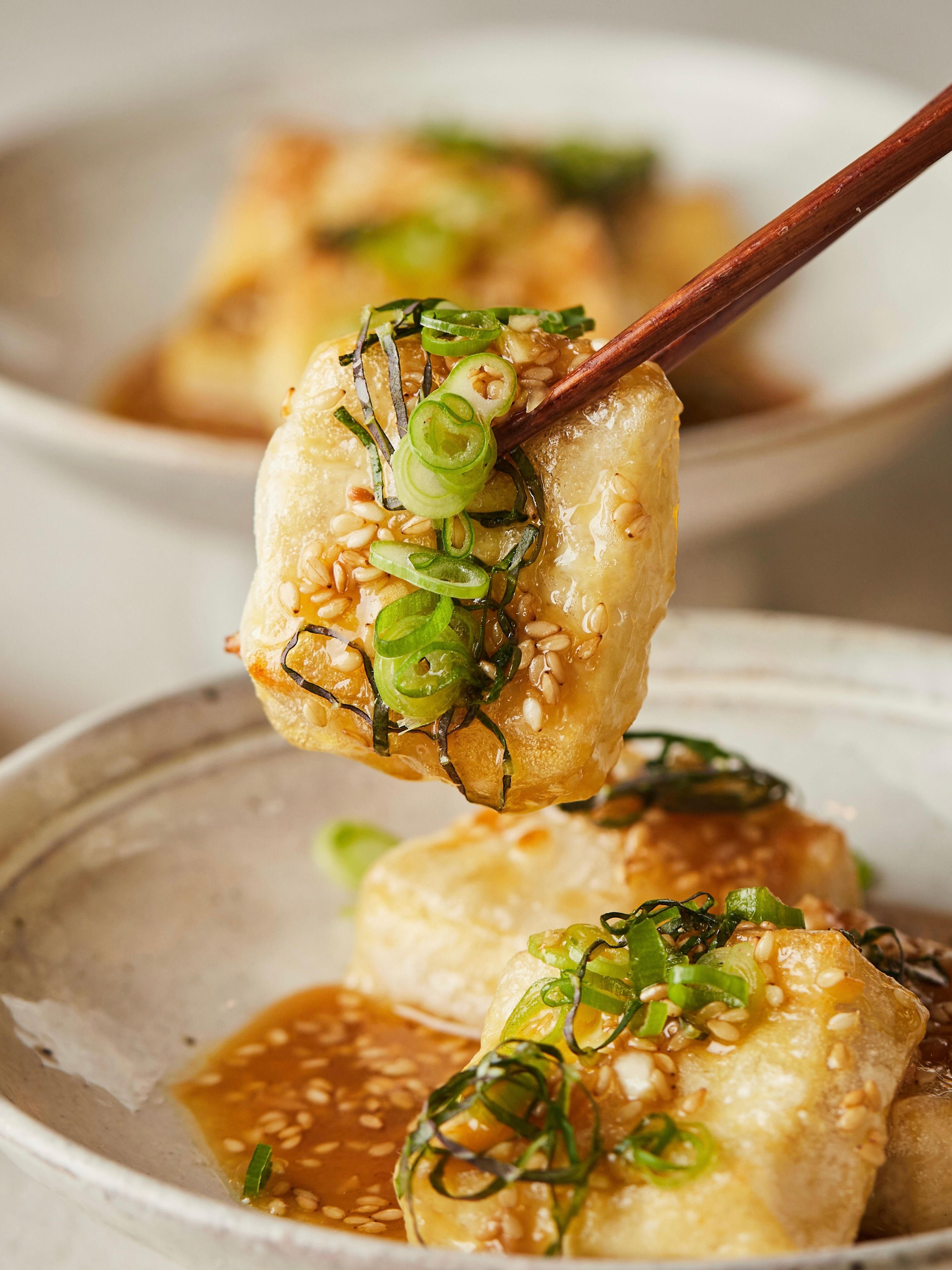 전분을 입혀 겉은 바삭, 속은 쫄깃~하게 구워낸 두부에 정말 잘 어울리는 된장 참깨 소스를 듬뿍 부어보세요! 저녁에 먹어도 속에 부담 없이 담백하면서도 감칠맛이 넘치는 맛이 매력이랍니다. 소박하지만 한 번 맛보면 자꾸 생각날 거예요!