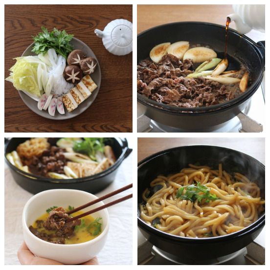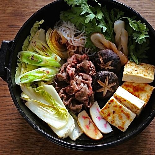 갖가지 신선한 채소와 버섯을 넣고 국물을 자작하게 부어 익혀먹는 요리예요. 짭조름하고 달달하게 간이 밴 고기와 채소를 노른자에 찍어 먹으면 더욱 고소해요! 우동면, 곤약면 등을 추가해 먹어도 좋고 죽으로 마무리해도 어울려요. 조리법의 특성 상 천천히 이야기 나누며 가족과 함께 즐기면 시간 가는줄 모르는 즐거운 식사시간이 돼요.
