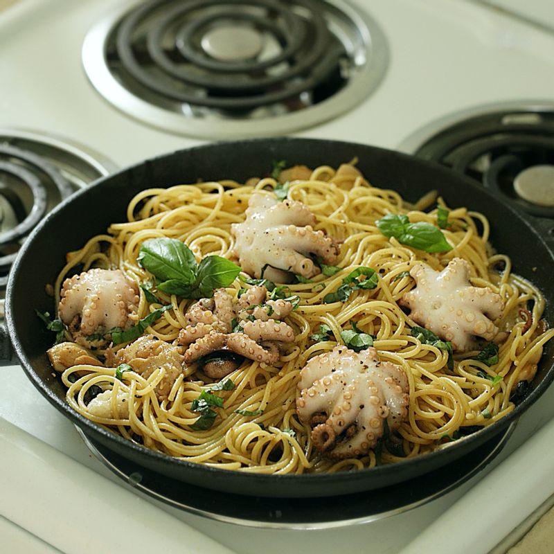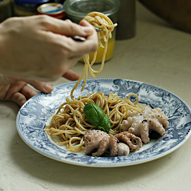 고춧가루 팍팍! 빨~간 주꾸미 볶음만 드셔보셨다면 주꾸미 오일 파스타는 어떠세요? 해산물 오일 파스타처럼 짭조름하면서도 오동통 쫄깃한 주꾸미가 파스타의 포인트죠. 새로운 시도지만 분명히 만족하실 겁니다.