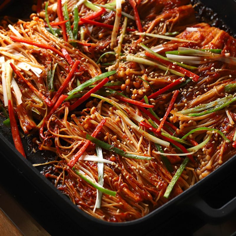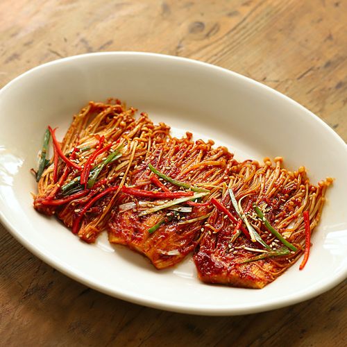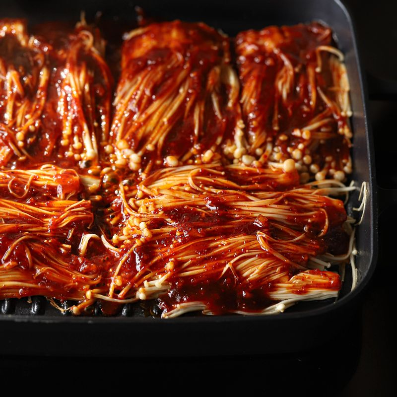 유튜브에선 이미 한차례 유행을 휩쓴 요리죠. 팽이버섯의 쫄깃한 식감과 매콤한 양념의 조합을 보고 나면 그냥 지나칠 수 없게 되는 마성의 조림! 밑반찬으로도, 술안주로도 아주 훌륭한 메뉴예요. 📝TIP 1. 맛술이 없다면 다른 재료로 대체하기 보다 생략하는 편이 좋아요.