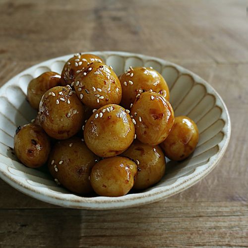 알알이 먹기 좋은 알감자조림은 아이 반찬으로 해주기에도 좋고, 어른들에겐 추억을 불러일으키는 밑반찬이죠. 알감자조림을 더 윤기나게 만드는 팁을 참고해 추억의 반찬을 만들어 보세요. 📝TIP 1. 알감자의 크기에 따라 익히는 시간을 가감해주세요. 알감자는 나무꼬치가 들어갈 정도로 익히면 돼요. 📝TIP 2. 감자를 너무 오랜시간 조리면 감자가 뭉개지거나 푸석해 질 수 있어요. 국물이 자작할때 불을 끄고 물엿으로 코팅해주면 윤기가 살아나요.