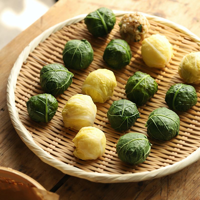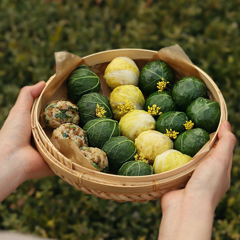 건강도 챙기면서 비주얼도 챙기는 봄도시락. 입맛을 돋우고 피로회복을 돕는 곰취, 해독과 항산화 효능의 케일, 식이섬유와 비타민C가 풍부한 배춧잎으로 건강 봄 주먹밥을 만들어 보세요. 📝TIP 1. 나물 별 데치는 시간! 곰취, 케일은 10~15초, 배춧잎은 30초 정도 데쳐주세요. 📝TIP 2. 주먹밥 동그랗게 예쁘게 마는 팁! 밥을 조금 모자라다 싶을 정도로 넣어주세요. 잎이 작다면 작은 잎 두 장을 반 겹쳐 말아주시면 돼요. 📝TIP 3. 곰취나 케일 외에 머위나 깻잎 같이 잎이 넓은 채소로 활용해주셔도 좋아요.