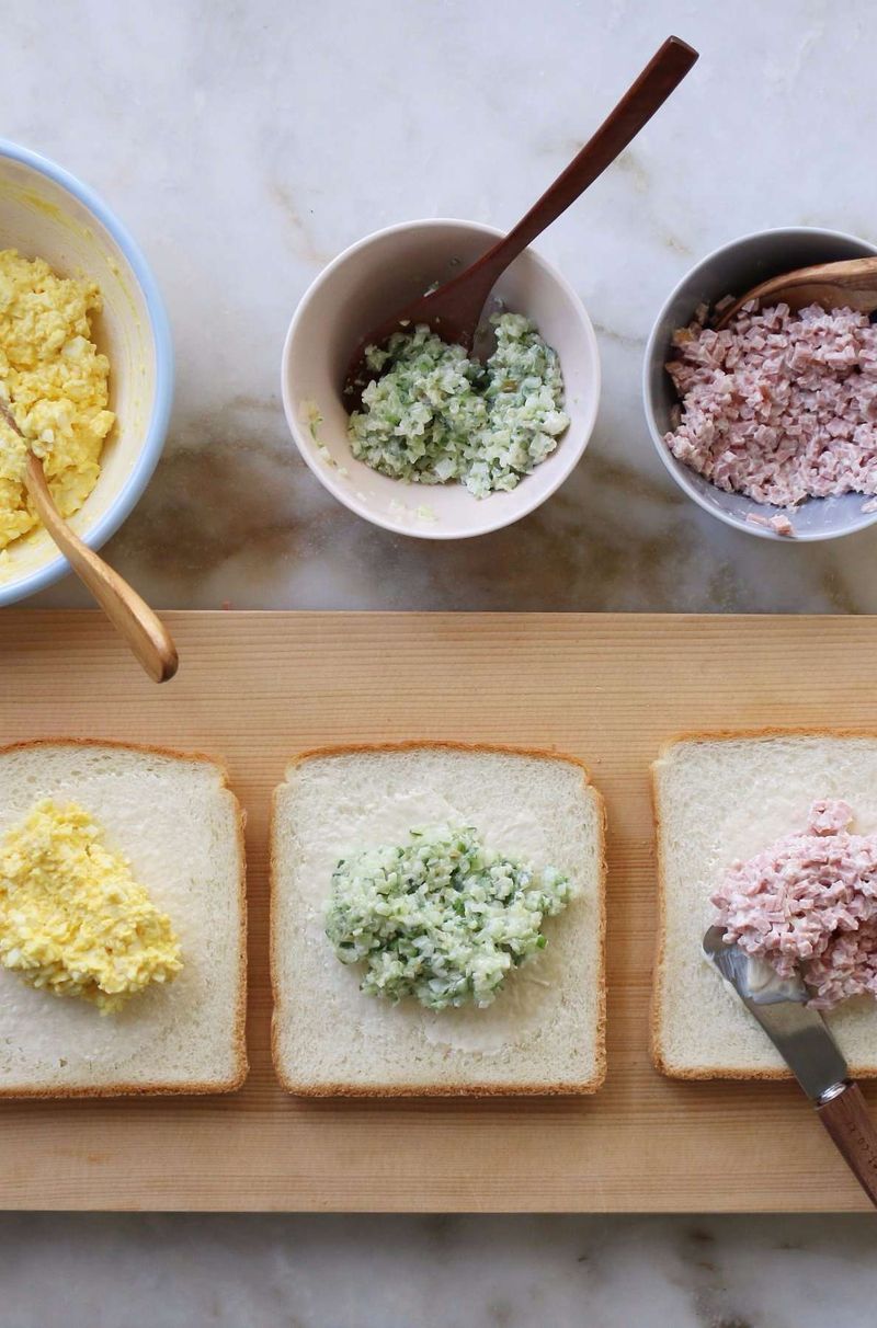 딱 3가지 재료만 준비해주세요. 슬라이스햄, 달걀, 오이&피클. 단일 재료만 넣어도 고유의 색깔로 보기에도 예쁘고 맛도 좋은 삼색 샌드위치 완성! 취향에 따라 입맛대로 골라드세요.
