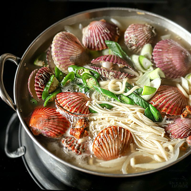 🥢 가리비 비주얼에 한번 놀라고, 맛에 두 번 놀라는 가리비 칼국수. 큼지막한 가리비를 넣고 한소끔 끓여내면 깊고 시원한 국물 맛을 느낄 수 있답니다. 겨울날 푸짐하게 끓여 사랑하는 이들과 함께 나눠 드셔보세요!