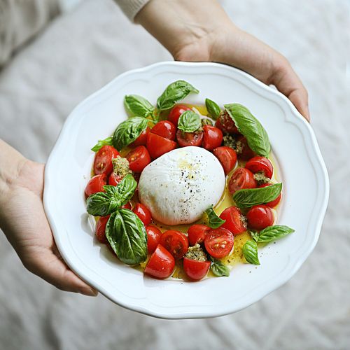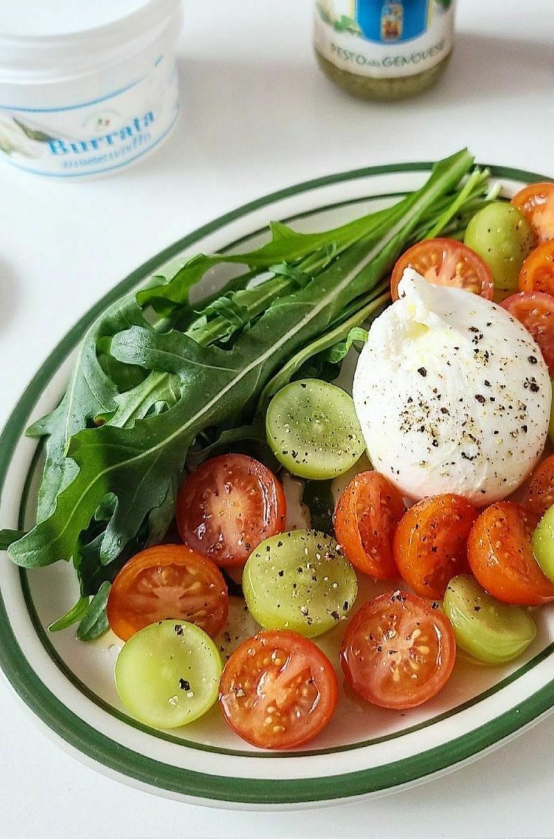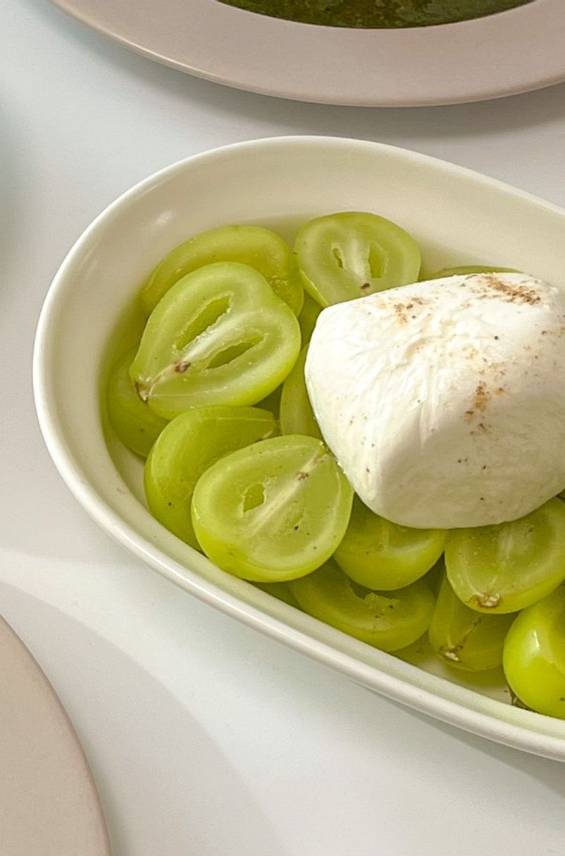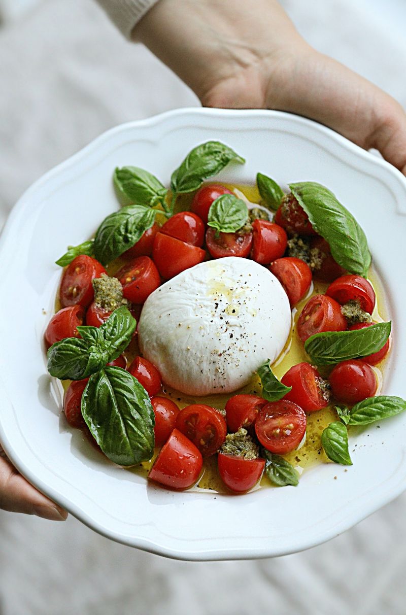 ⏰요리 시간 : 5분 준비한 재료를 올려주기만 완성되는 샐러드가 있어요. 너무 간단해서 레시피라고 소개하기에도 민망하지만 맛을 보면 눈과 입이 번쩍하는 맛! 부라타 치즈 주변에 방울토마토, 바질잎 올리고 올리브오일만 뿌려줘도 그 자체로 플레이팅까지 되는 근사한 샐러드랍니다. 📝TIP 1. 바질페스토는 시판용을 구매하셔도 되고, 직접 만드셔서 사용해도 좋아요. 바질페스토 레시피 또한 우리의식탁에서 확인하실 수 있답니다. 📝TIP 2. 바질페스토를 준비하기 어렵다면, 소금, 후추로만 간을 해줘도 충분히 맛있어요.