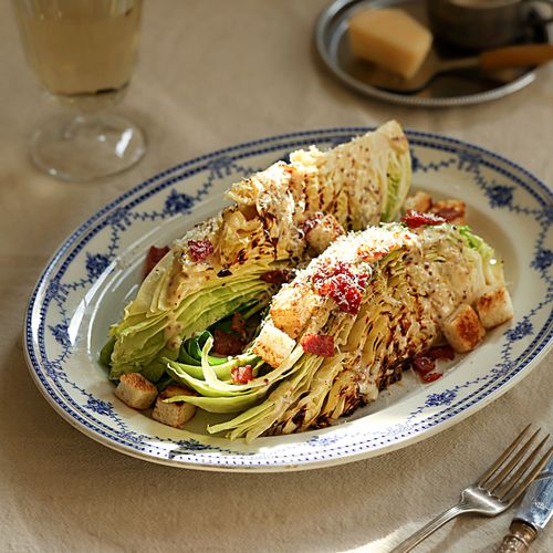 ⏰요리 시간 : 20분 고깔 양배추는 일반 양배추보다 껍질이 얇고 당도가 높아 생식, 샐러드 재료로 많이 먹는다고 해요. 고깔 양배추를 노릇하게 굽고 그 위에 시저 드레싱, 크루통, 구운 베이컨 등을 뿌려주면 맛, 건강, 비주얼 잡은 샐러드 완성! 📝TIP 1. 베이컨 대신 닭가슴살을 넣어줘도 괜찮아요. 시저드레싱이 어떤 재료와도 궁합이 좋답니다.