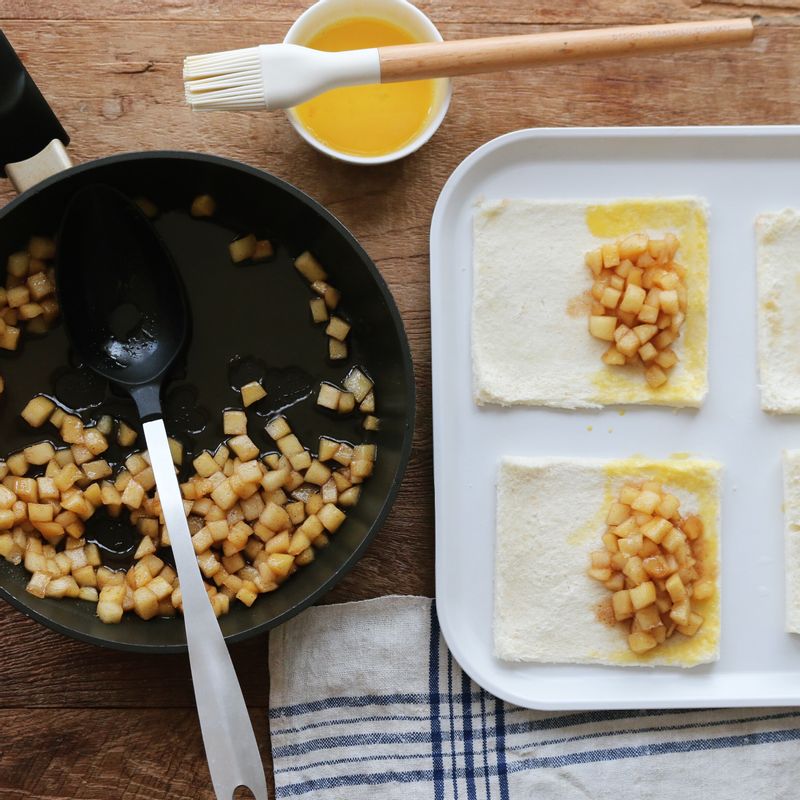 🍎맥도날드 가지 말고 집에서 홈메이드 애플파이를 만들어 드세요. 반죽하지 않아도 오븐이 없어도 돼요! 흔한 식빵 속에 사과 속 재료를 넣고 만들어 주면 그럴싸한 모양의 애플파이가 완성된답니다. 달콤 상큼한 애플파이가 여러분의 기분을 위로해 줬으면 좋겠어요.