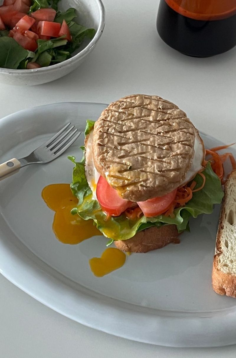 โฐ์๋ฆฌ์๊ฐ : 20๋ถ โ๏ธ์ฌ๋ฃ(1์ธ๋ถ) : ํ๋ฒ๊ฑฐ ๋นต 1๊ฐ, ์นํจํ ๋ ์ฏ๋ถ๊ฐ๋น๋ง 1๊ฐ, ์ฌ๋ผ์ด์ค ์ฒด๋ค์น์ฆ 1์ฅ, ํ ๋งํ 1์กฐ๊ฐ, ์ฒญ์์ถ 2์ฅ, ๋ง์๋ค์ฆ ยฝ ํฐ์ 1. ๋นต์ ๋ฐ์ผ๋ก ๊ฐ๋ผ์ฃผ์ธ์. 2. ๋ฌ๊ตฐ ํฌ์ ์นํจํ ๋๋ฅผ ์ฌ๋ ค ๊ตฌ์์ฃผ์ธ์. (tip. ์กฐ๋ฆฌ๋ฒ์ ์ ํ ๋ท๋ฉด ์์ธ๋ฅผ ์ฐธ๊ณ ํด์ฃผ์ธ์) 3. ํ ๋งํ ๋ ๋ฅ๊ธ๊ฒ ์ฌ๋ผ์ด์ค ํ๊ณ ์ฒญ์์ถ๋ ๊นจ๋์ด ์ป์ด ์ค๋นํด์ฃผ์ธ์. 4. ๋นต ์์ชฝ์ ๋ง์๋ค์ฆ๋ฅผ ๋ฐ๋ฅธ ํ ์์์ถ - ์นํจํ ๋ - ์น์ฆ - ํ ๋งํ - ์ฒญ์์ถ ์์ผ๋ก ์ฌ๋ฆฐ ํ ๋๋จธ์ง ๋นต์ผ๋ก ๋ฎ์ด ์์ฑํด์ฃผ์ธ์.