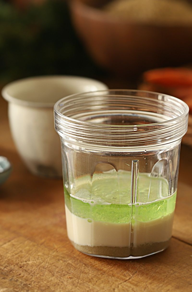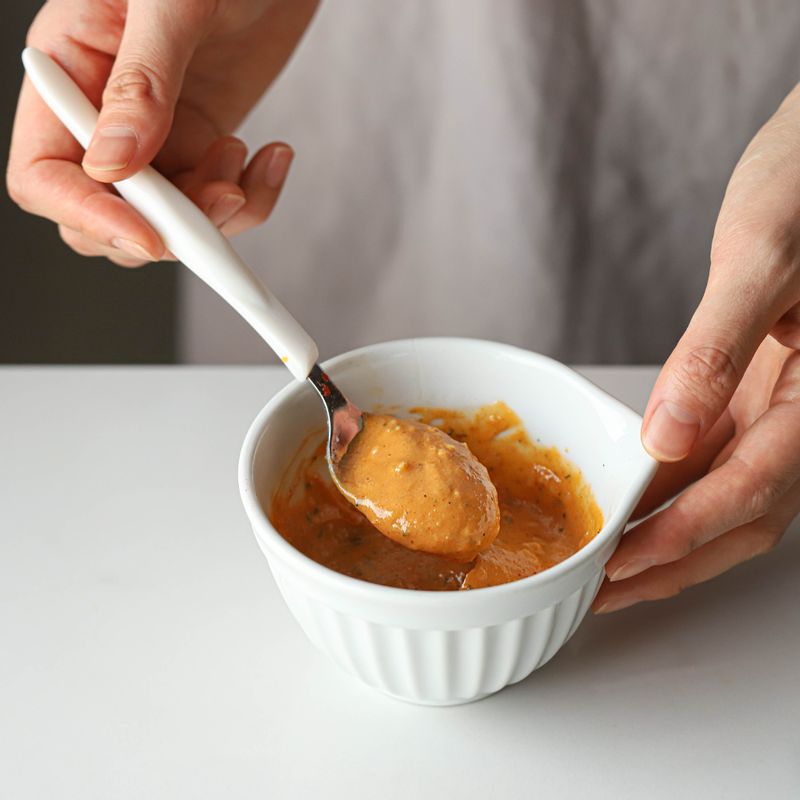 튀김, 빵을 찍어 먹는 딥(dip) 소스는 채식 음식이라고 빠질 수는 없습니다. 뿌리채소 구이의 맛을 한층 더 살려줄 비건 마요네즈를 만들어 보세요. 원래 마요네즈는 달걀, 오일 등을 넣고 만들지만, 비건을 위한 마요네즈는 달걀의 고소한 맛을 대체하기 위해 두유를 넣어줍니다.