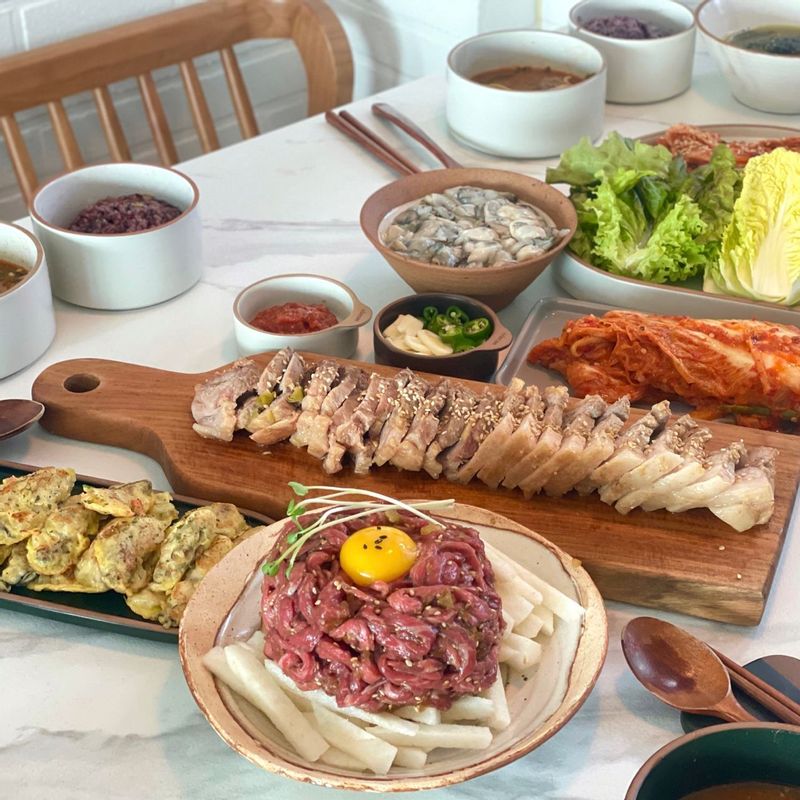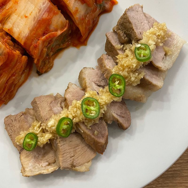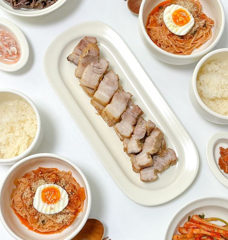 - 부드럽고 촉촉함 그 잡채 돼지고기 무 수분 수육. 우리의식탁 레시피 중 특히 반응이 좋은 레시피랍니다. 이 레시피에 소개된 수육 소스는 깔끔하고 고급지면서 일반 쌈장과는 확연히 차이가 있는 맛이라며 많은 분들이 극찬했어요. ❣️곁들이기 좋은 음식 : 김치비빔국수, 두부 김치 👇🏻돼지고기 무 수분 수육 레시피 바로 가기