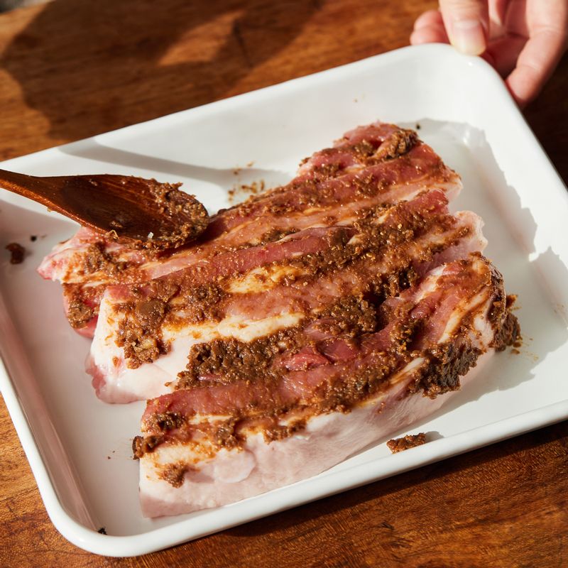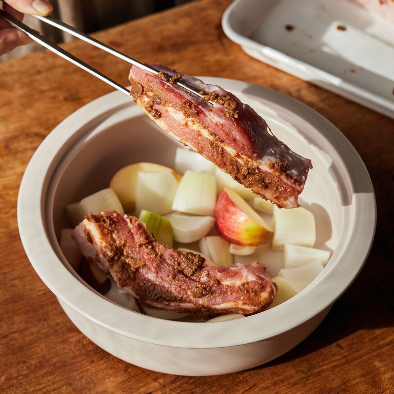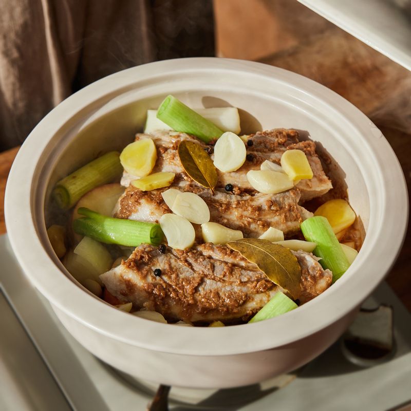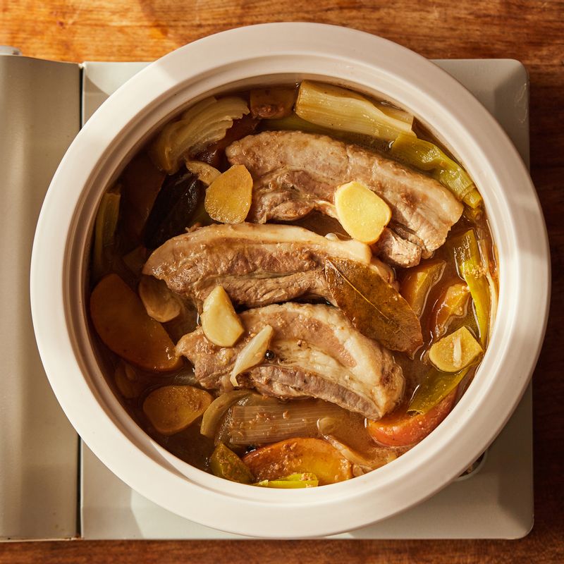- 🍯요리꿀팁 하나. 묵직한 주물 냄비 또는 바닥이 두툼한 냄비를 사용하세요. 그래야 물을 넣지 않고도 냄비 안의 열기와 재료의 수분으로 타지 않고 기름기는 쏙 뺀 무 수분 수육을 만들 수 있답니다. 🍯요리꿀팁 둘. 소스 재료에서 두반장이 없다면, 쌈장이나 된장에 고추장을 살짝 섞어 만들어 보세요. 이제껏 먹어본 적 없는 깔끔하고 고급진 수육 소스로 제격!
