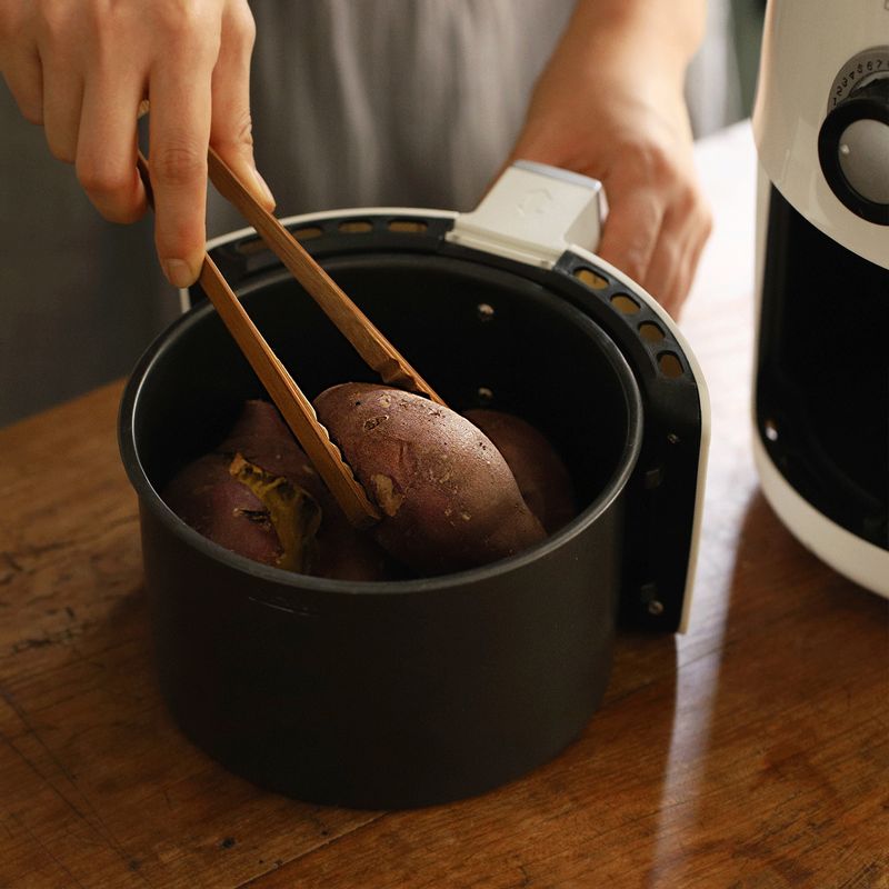 - ① 에어프라이어에 고구마 굽기 • 껍질 째 씻은 고구마는 에어프라이어에 넣은 후 200도에서 30분 정도 구워주세요. 에어프라이어마다 온도와 시간이 다를 수 있어요! 15분 간격으로 앞 뒤를 돌려주며 상태를 확인해주세요.