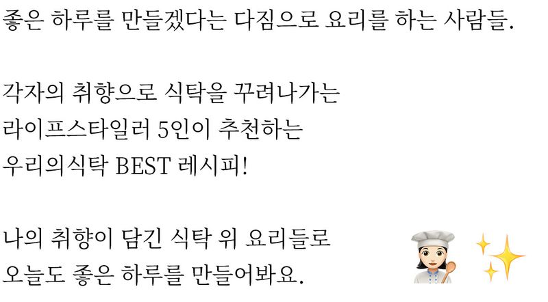 라이프스타일러 5인이 추천하는 우리의식탁 BEST 레시피