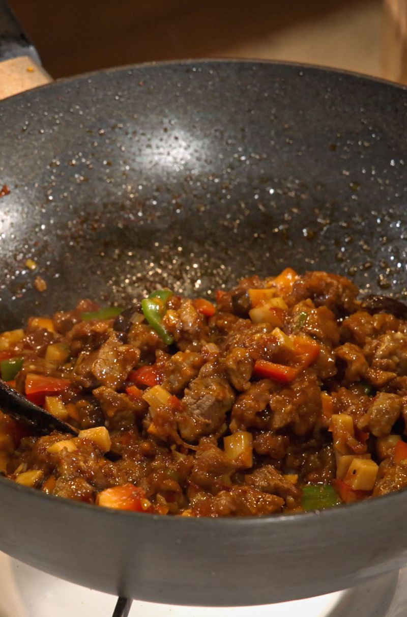 📝TIP 4. 양상추! 찢어지지 않게 떼어내고 싶다면, 밑동을 자르고 흐르는 물을 잎 사이에 채운 후 떼어내 보세요. 📝TIP 5. 라면을 볶을 때는 불의 세기를 약불로 해주셔야 타지 않아요. 📝TIP 6. 소고기를 볶을 때 역시 '팬은 뜨겁게 기름은 차갑게 원리를 적용해주세요. 소고기는 기름에 튀기는 것이 아닌 볶아준다는 점을 유의해주세요! 📝TIP 7. 여기서도 불의 세기는 일정하게 유지해주시고, 술, 미원, 설탕 등의 양념 재료는 팬의 가장자리에 둘러주세요! 위에서 만들어뒀던 고추기름이 여기서도 요긴하게 쓰인답니다.