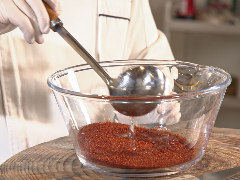 실제 황진선 셰프의 레스토랑에서도 쓰인다는 그 고추기름! 몇 가지 팁만 잘 지키면 집에서도 도전해 볼 수 있어요. 📝TIP 1. 불의 세기는 중불에서 시작해 주세요. 기름은 온도가 올라갈수록 아지랑이가 피어오르고 뽀글뽀글 소리가 난답니다. 물이 끓는 것과 다르게 조용하기 때문에 옆에서 꼭 지켜봐주세요! 📝TIP 2. 온도를 서서히 올려야 재료 본연의 맛이 잘 담긴답니다. 📝TIP 3. 양파 겉에 질긴 껍질, 샐러리 잎, 마늘 꼭지 부분을 넣어줘도 좋아요.