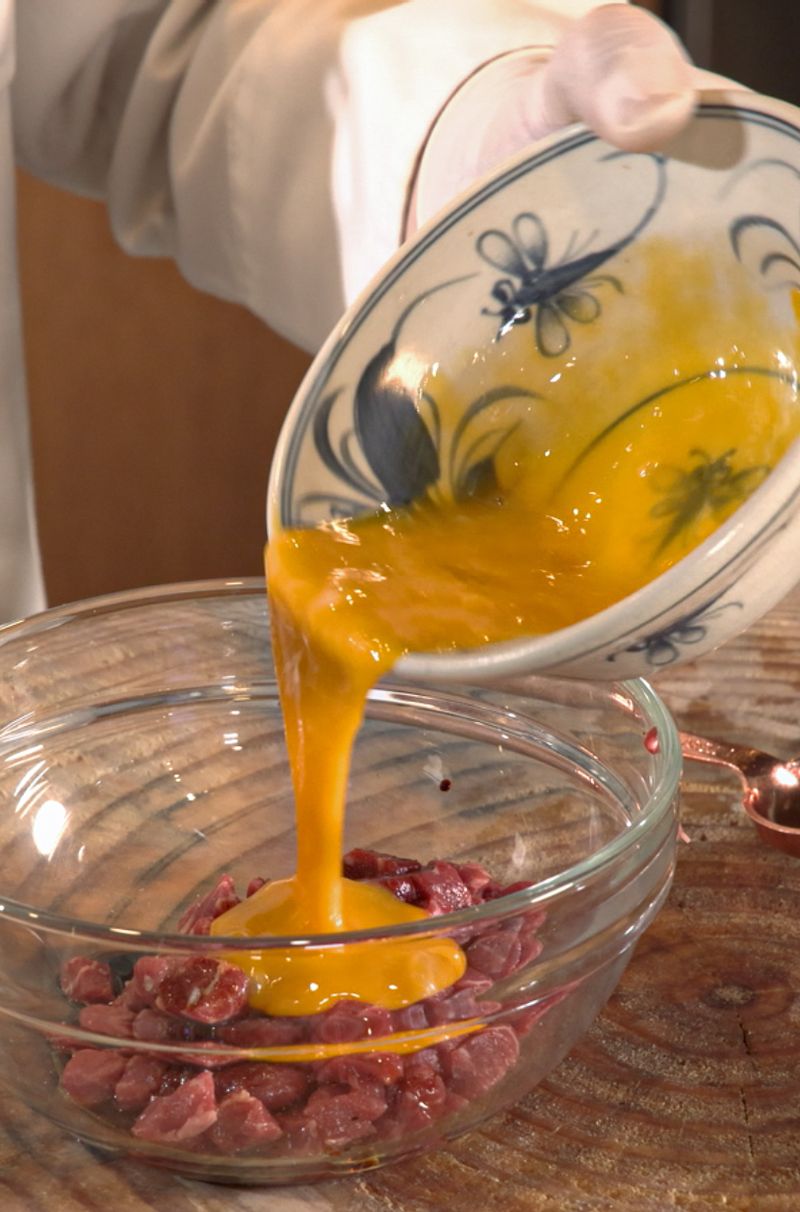 📝TIP 1. 소고기 안심은 랍스터, 닭고기 등의 재료로 대체해도 좋아요. 조금 매콤하게 즐기고 싶다면 피망 대신 고추를 넣어주세요. 📝TIP 2. 표고버섯은 사용 직전 흐르는 물에 씻어주시고, 물에 불렸다가 사용하시면 식감과 향이 달라진답니다. 손질한 채소들은 한 번 데쳐서 준비해주세요. 📝TIP 3. 만약 계란을 생략하실 경우, 전분도 생략해주세요.