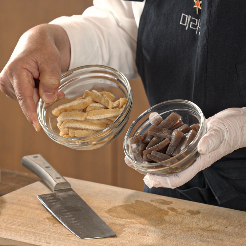 궁중떡볶이에는 각종 채소와 고기, 양념 등 다양한 재료가 들어가는데요. 재료 손질팁과 맛의 퀄리티를 한층 높여주는 팁을 알려드릴게요! 📝TIP 1. 파프리카는 겉면이 바닥에 닿도록 두고 썰어야 미끄러지지 않아요. 📝TIP 2. 소고기는 대접살을 추천하고 채끝살 또는 보섭살로 대체해도 좋아요. 📝TIP 3. 모든 채소를 기름에 볶으면 느끼할 수 있어요. 양파는 기름으로 볶고 파프리카는 물을 넣어 볶아주세요.