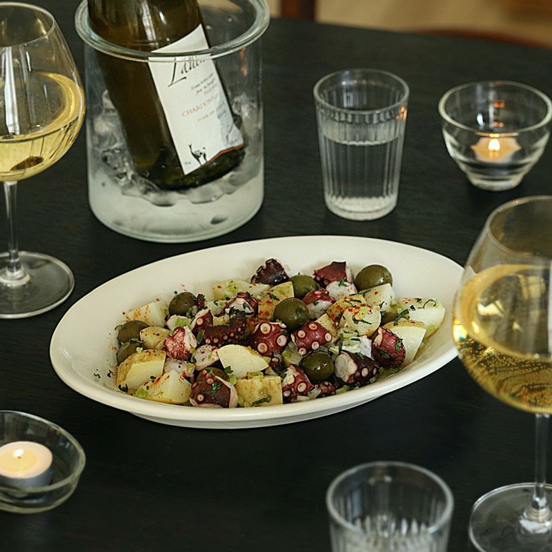 '뽈뽀샐러드? 뽈뽀가 뭐야?'라고 생각하셨을텐데요. 뽈뽀는 말 그대로 스페인어로 문어를 뜻해요. 뽈뽀샐러드에선 '자숙 문어'를 사용해주는데요. 여기서 '자숙'이란 수분이 이용해 97~100℃로 일정 시간 가열하는 식품 가공 방식을 말해요. 즉, 세균이 번식하기 쉬운 해산물에 살균효과를 내주는 거죠!