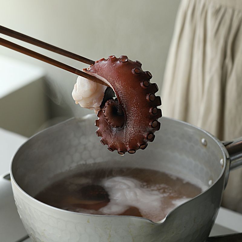 해서 자숙문어는 별도의 손질과 데치는 과정 없이 바로 먹을 수 있다는 장점이 있어요. 하지만 해산물 특유의 신선한 향이 빠져나간다는 단점도 있어, 어차피 익혀서 요리를 하실 계획이라면 생문어를 사용해주셔도 괜찮아요.