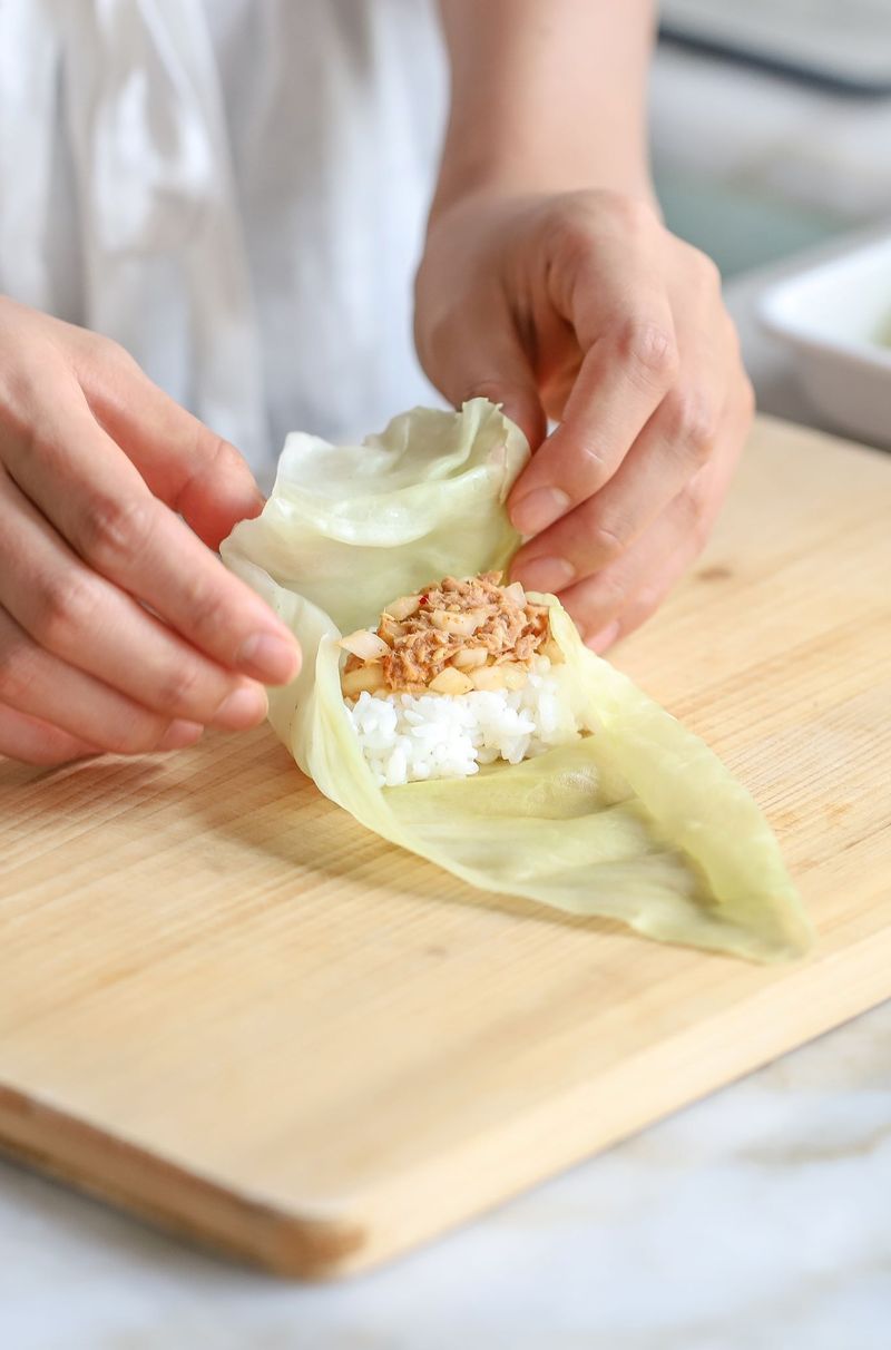 집에 처치 곤란한 배추가 남아있으신가요? 두부, 참치와 함께 건강하고 맛있는 한 끼 만들 수 있어요. 담백하게 볶은 두부와 참치를 배추로 감싸 돌돌 말아냈답니다.