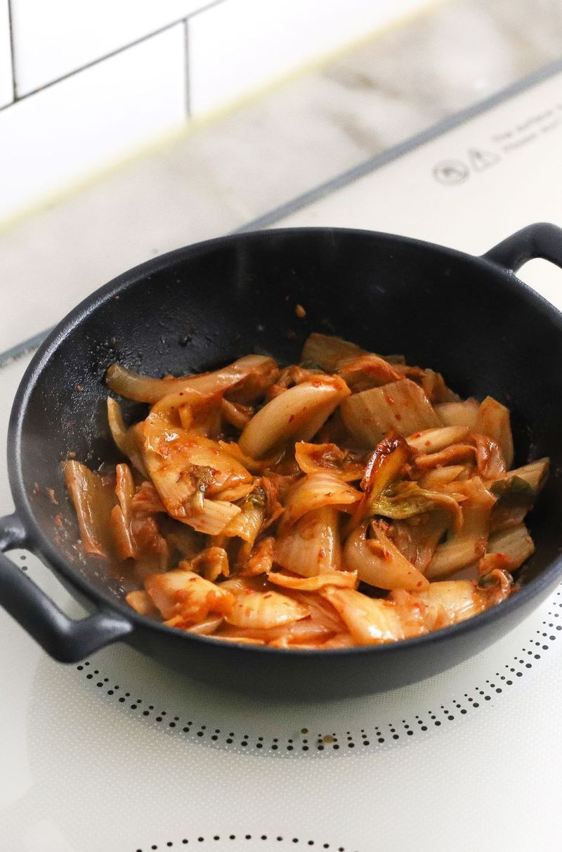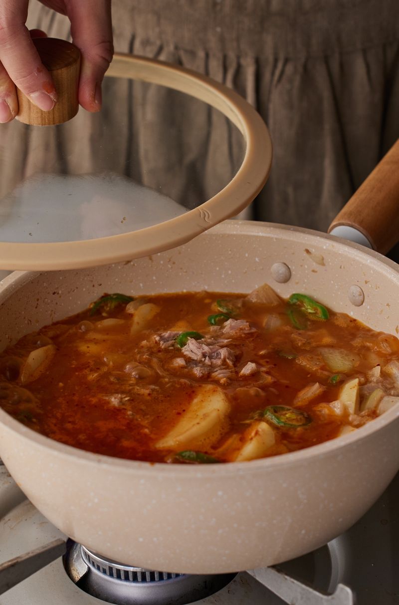 보글보글 끓는 소리만 들어도 군침이 꼴깍 넘어가는 참치김치찌개 레시피, 딱 알려드릴게요. 📝TIP. 꿀팁은 바로 들기름! 김치를 들기름으로 볶으면 고소함과 풍미를 더할 수 있답니다.(물론 참기름으로 볶아도 충분히 맛있어요.)