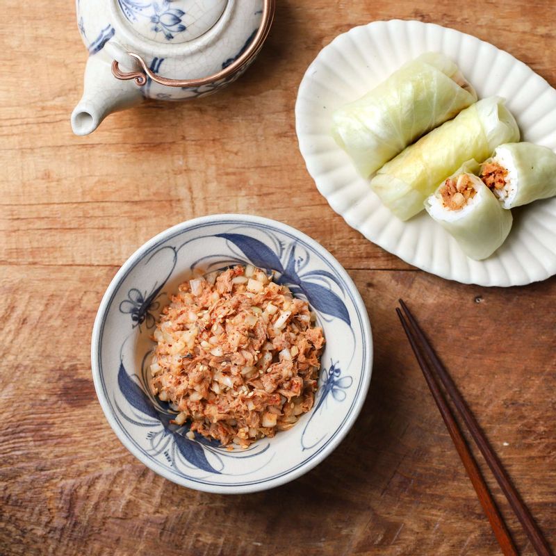 참치장을 흰 쌀밥과 그대로 즐겨도 좋고, 쌈채소와 곁들여 싸먹어도 좋아요. 삶은 양배추에 정갈하게 말아내면 초대요리로도 손색 없어요!