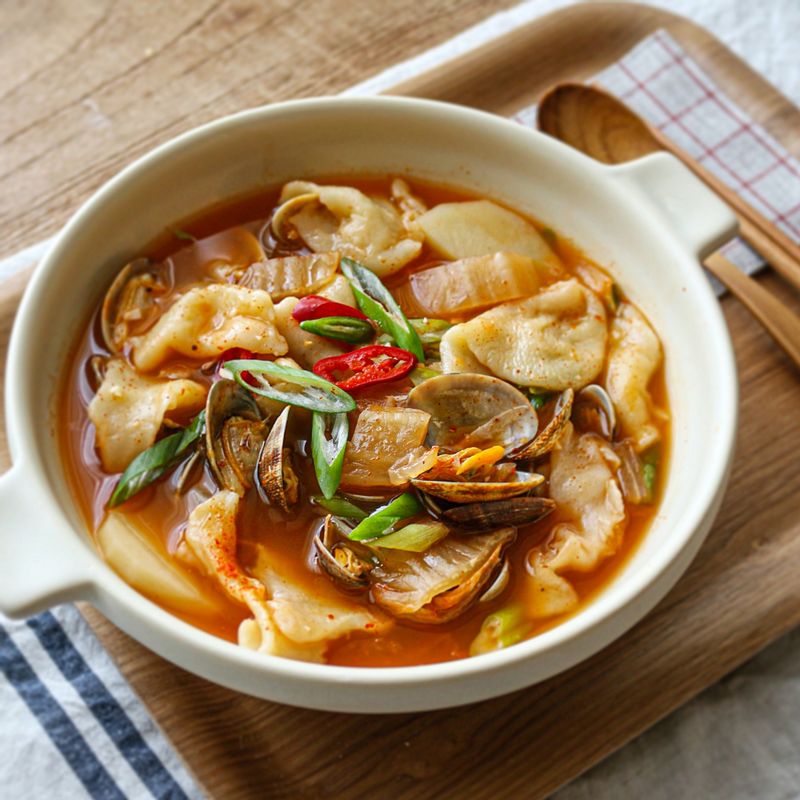 📝TIP 1. 수제비 반죽 팁! 밀가루와 물을 넣어 어느정도 섞어준 뒤 식용유 1작은술과 소금 1/2작은술을 넣어주세요. 그러면 반죽이 들러붙지 않고 부드러워지는데요. 식용유와 소금이 글루텐 성분의 탄성을 줄여 잘 늘어나게 하고, 얇게 펴도 끊어지지 않고 쫀득한 식감을 살릴 수 있게 해준답니다. 그리고 밀가루는 강력분, 중력분을 사용해주셔야 쫄깃한 식감으로 즐기실 수 있어요. 📝TIP 2. 바지락조개 알러지가 있거나 냉장고에 재료가 없다면, 황태를 넣거나 취향에 따라 다른 해물류를 넣어서 만드셔도 좋아요.